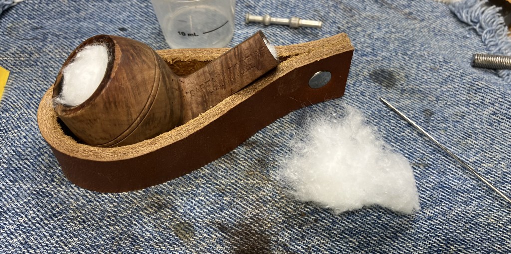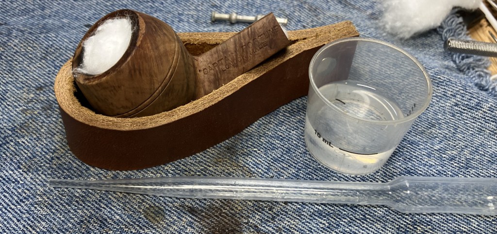 I applied the first coating of oxalic acid to the stummel with a cotton swab.