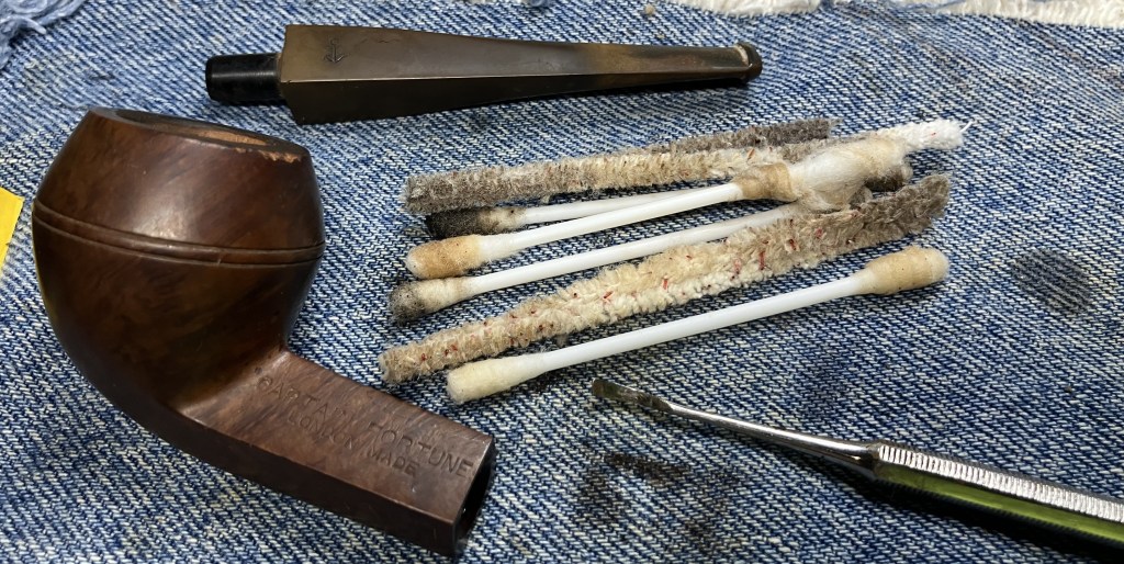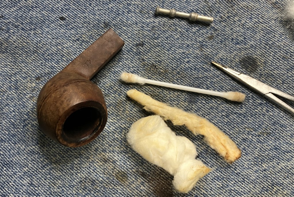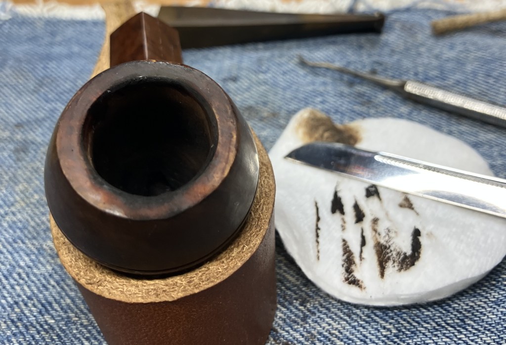 I was surprised at how clean, relatively, the airway of the shank was.Some scraping with a dental scraper was done followed by an alcohol soaked shank brush and several bristle pipe cleaners and cotton swabs also dipped in the 99% ethyl alcohol.
