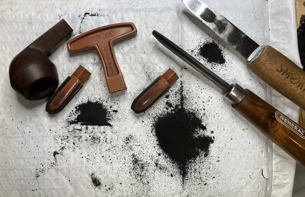 Reaming was the first task. The PipNet with #1 and #2 blades, the Smokingipes Low Country reamer and the General triangular scraper were recruited for the task.