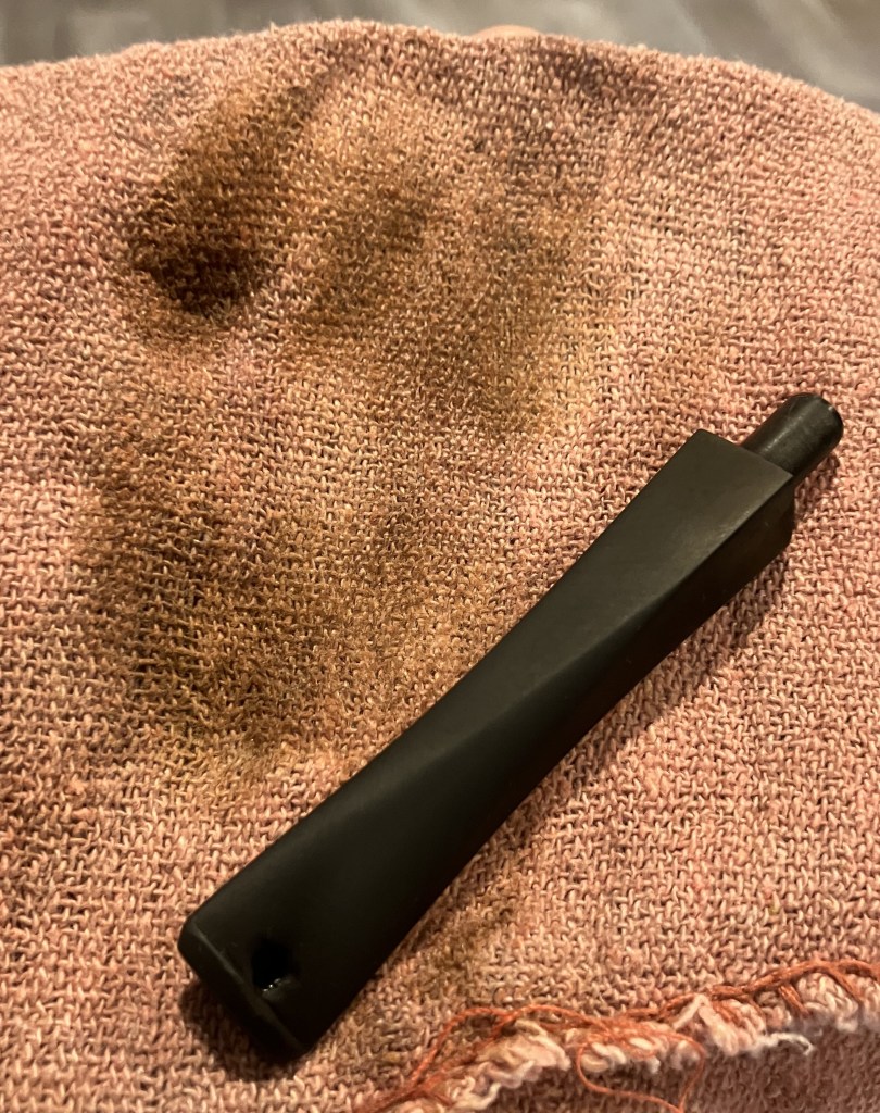 This Tobacco chamber was drilled with a more conical bit, as is traditional for a Dublin shape pipe. The Kleen-Reem fit this chamber better that the PipNet and was used as well.
