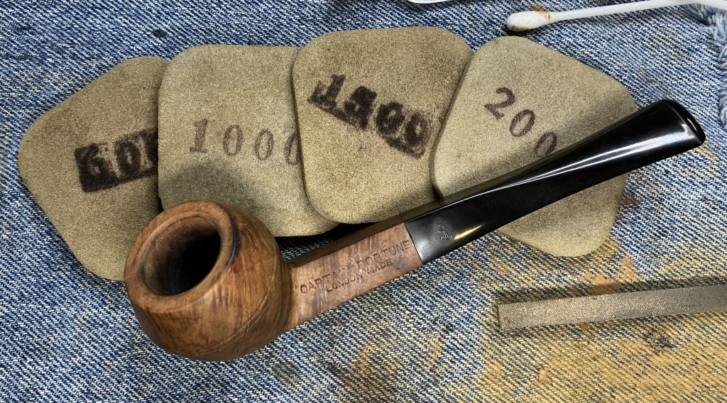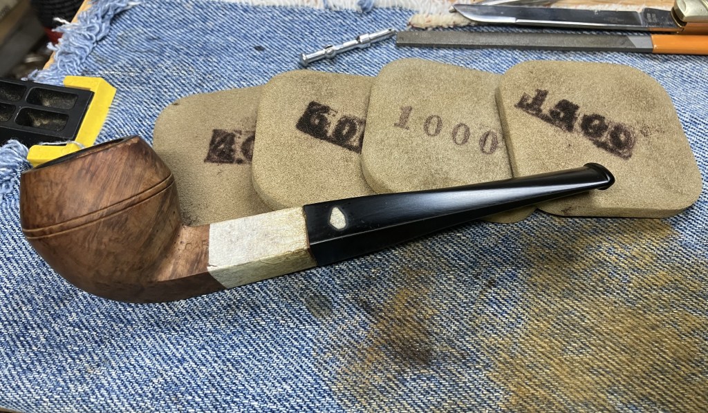 I wanted this pipe to be lighter in color to show off the briar grain. I first started a light sanding with a 320 grit sanding sponge.