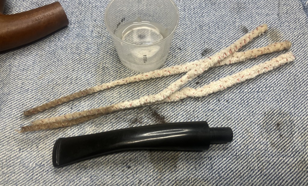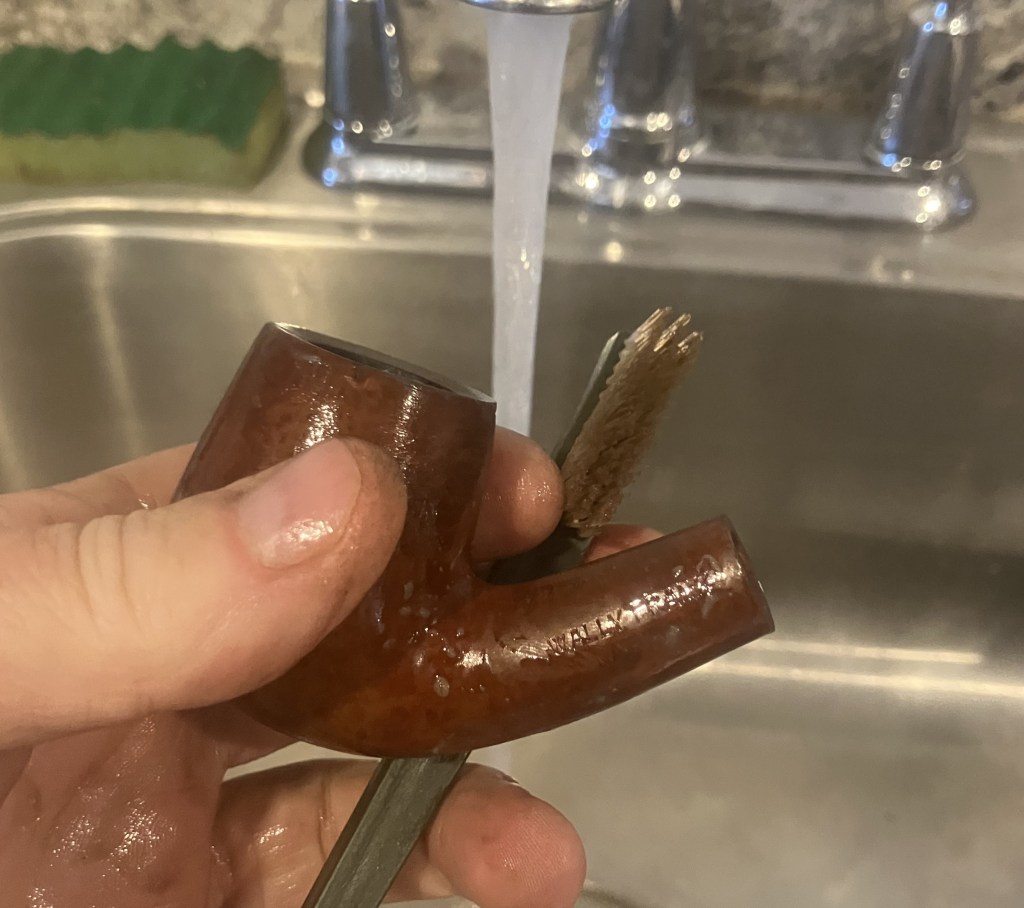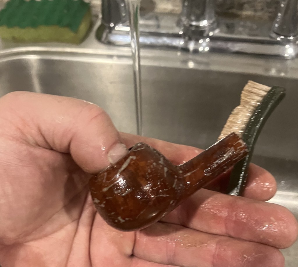 At the sink, I scrubbed the stummel with undiluted Murphy Oil Soap and a nylon brush. The soap was rinsed with warm water and dried with a cotton hand towel.