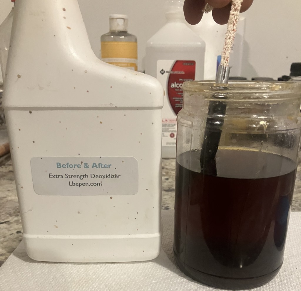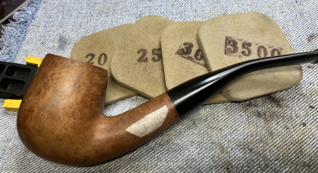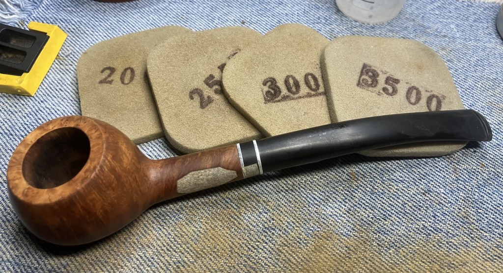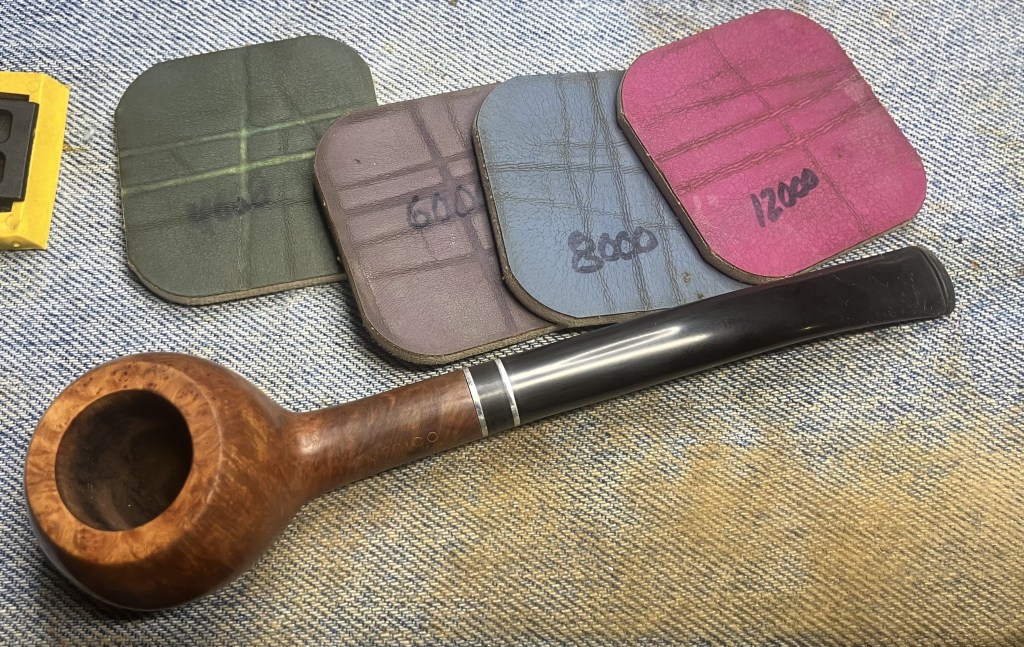 After the sponges came the micro-mesh pads. These were wiped as with the sanding sponges except I used Obsidian Oil on the stem rather than mineral oil.