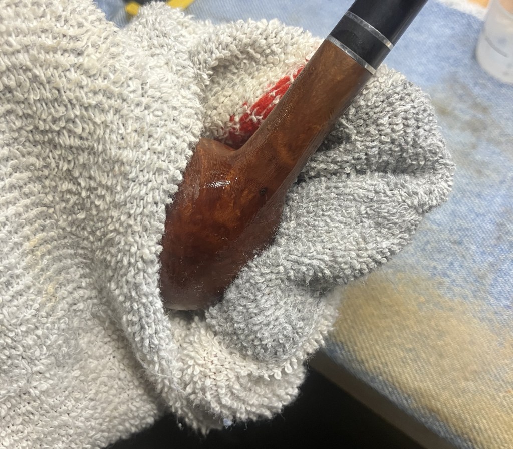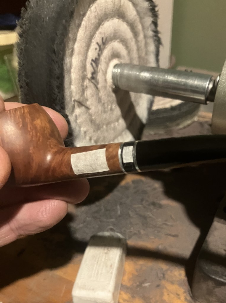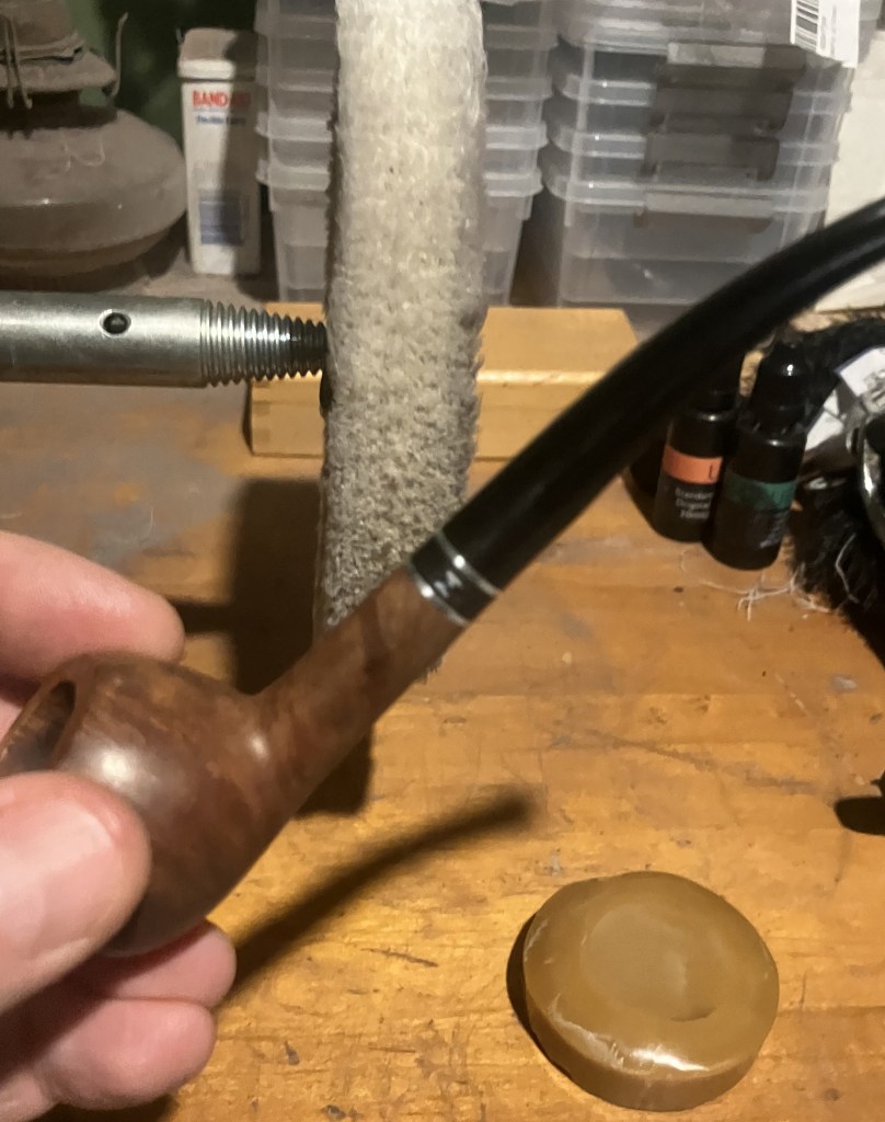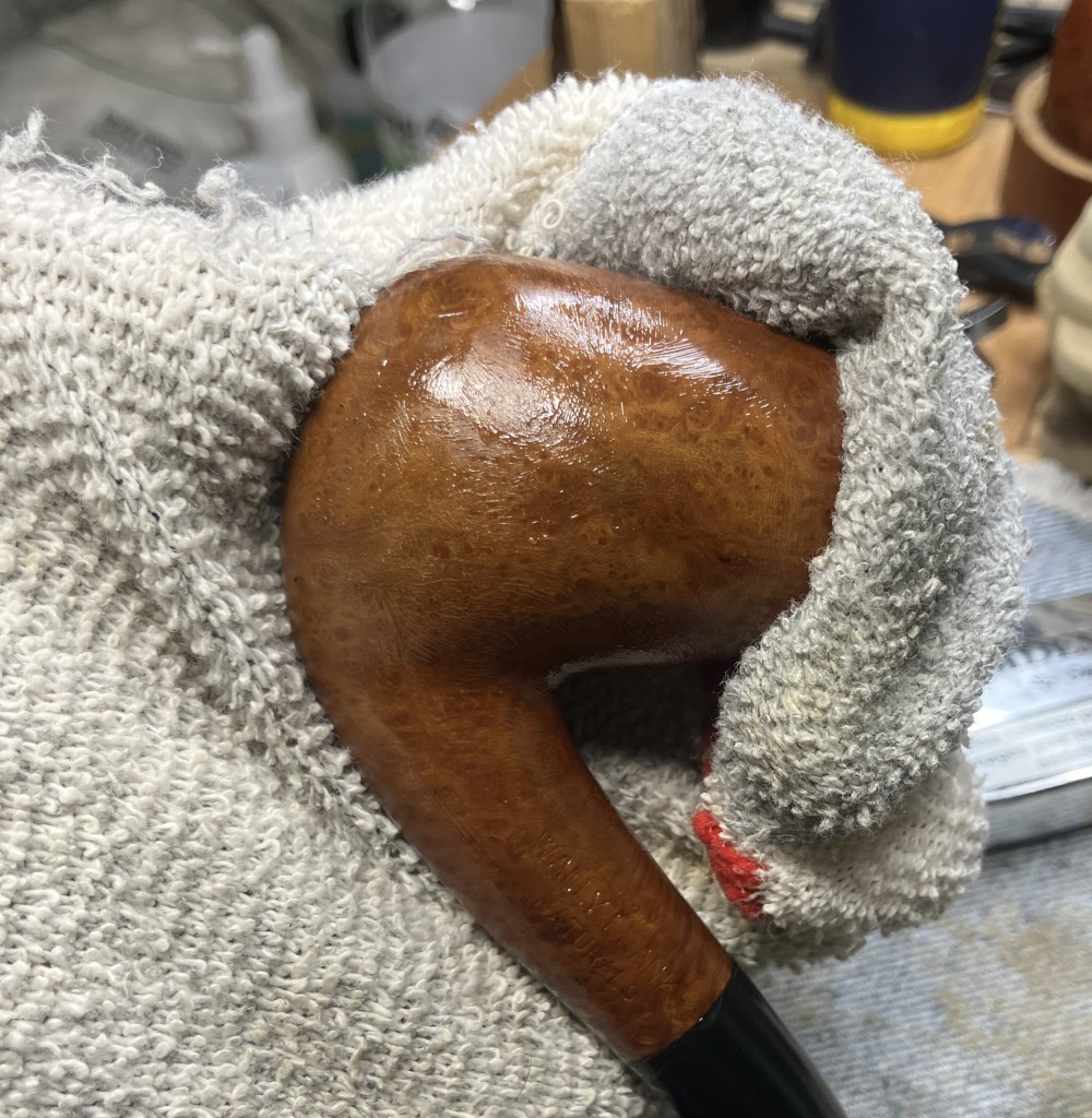 The final steps were to apply several coats of carnauba wax to the shank and stem with the buffer. This was followed by a hand buffing of the pipe with a microfiber polishing cloth.