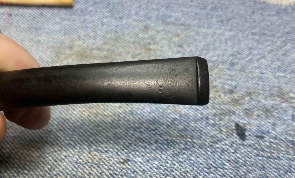 I apparently neglected to take a photo of the pipe arriving at the workbench and jumped right to the stem. Slight creases could be seen on the stem. I assumed these were from the bending of the stem, likely after it had been polished. There was also some light tooth chatter.
