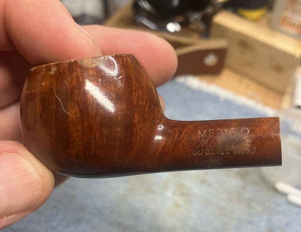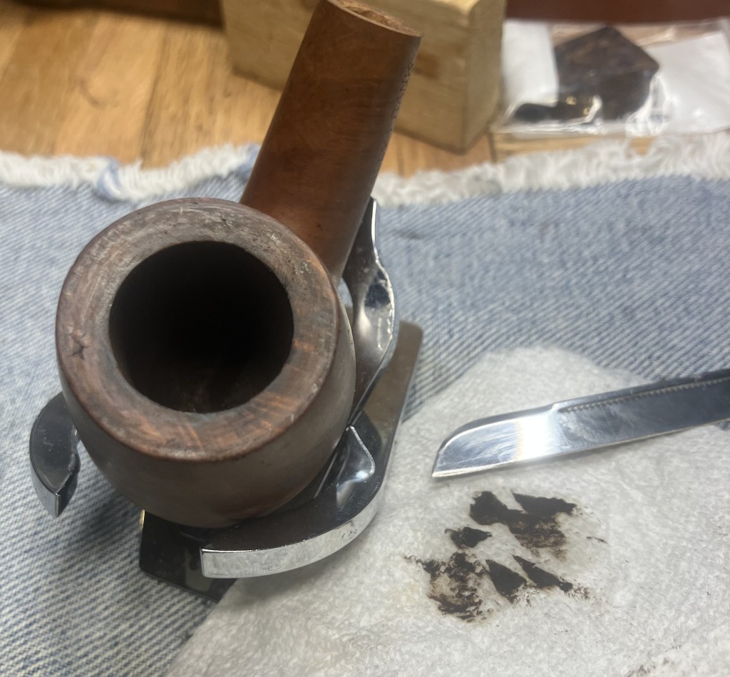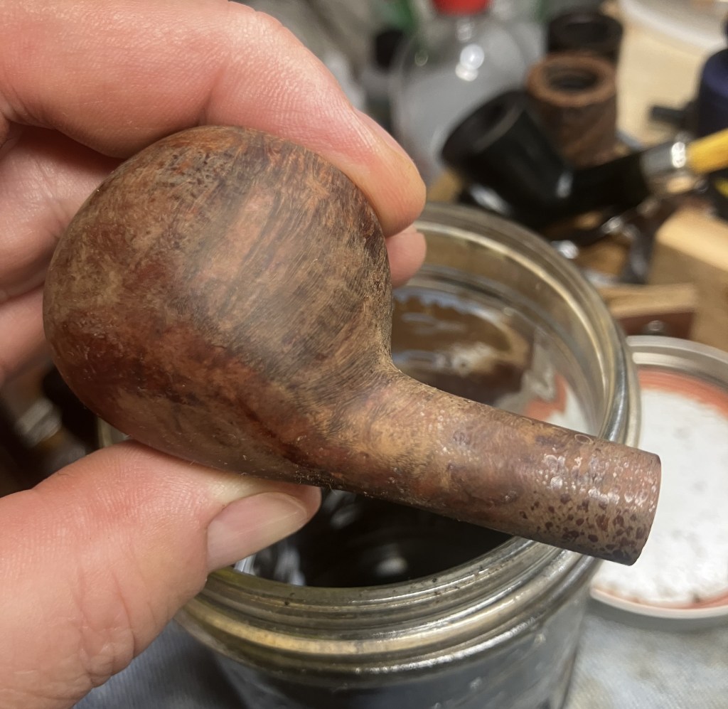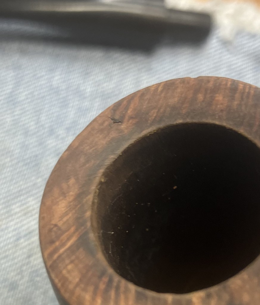 Overall, the pipe was in very good shape. The box is just a fun piece of ephemera that you don’t see frequently with estate pipes. There were a few pits that would require filling. The “Natural” finish would have to be maintained. The stem showed little evidence of oxidation, I thought that it must have been stored in that box and never saw the light of day. Of course a reaming of the tobacco chamber and a thorough cleaning were needed, but this looked like a very relaxing restoration.