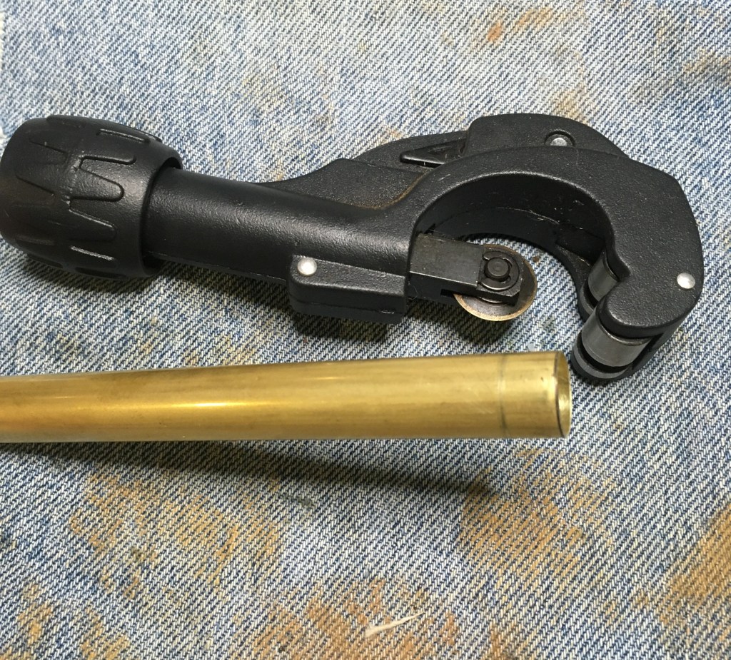 After filing the shank and checking the fit of the tube I was ready to cut the band. I slid the 9/16 inch tube into a 19/32 inch tube. It was a tight fit but this larger diameter tube would allow me to use the pipe cutter without the 9/16 inch tube from moving in the cutter and cutting an uneven thickness band.