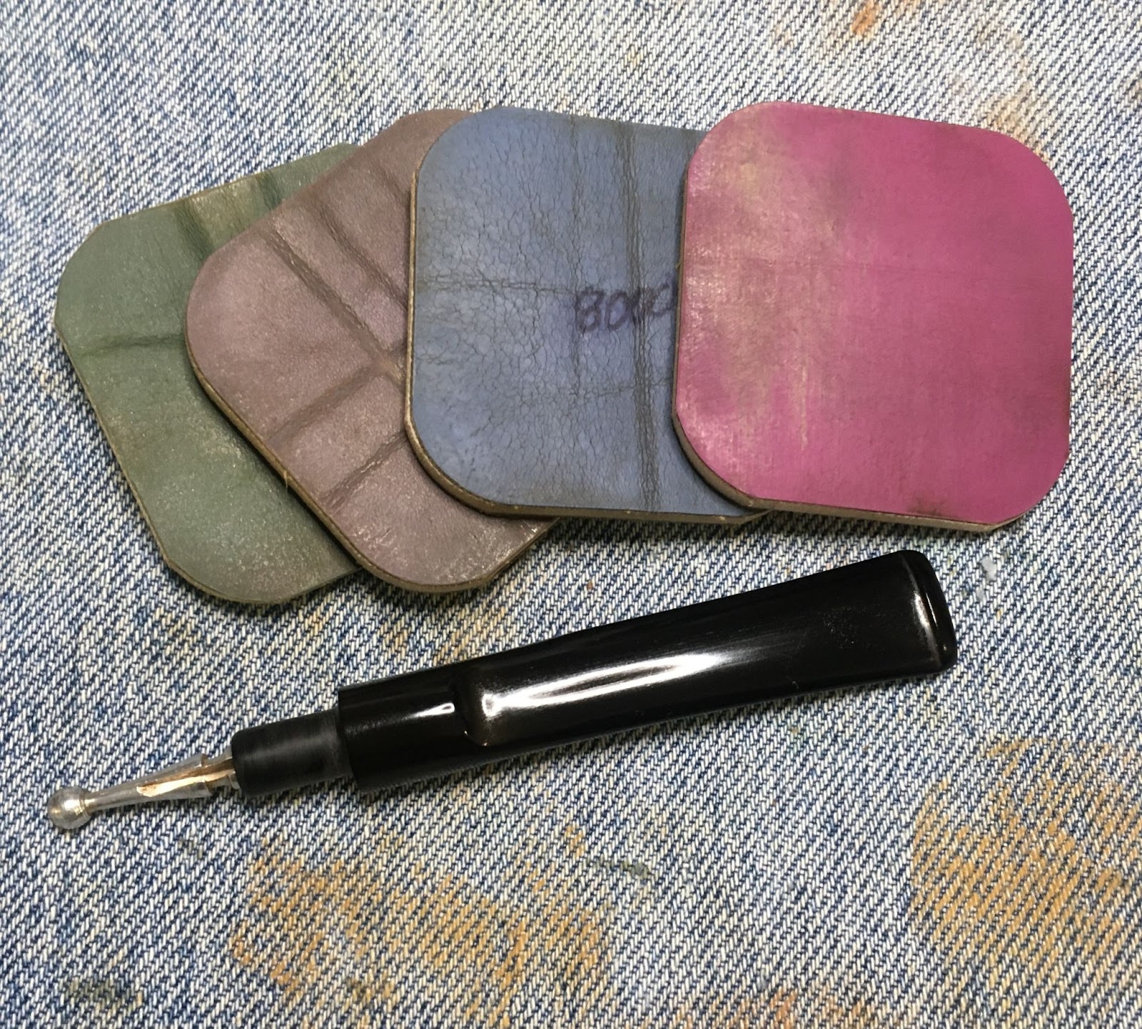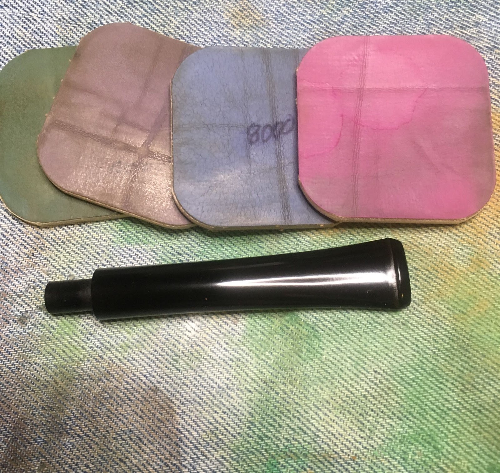 I began with a clean denim piece on the workbench.