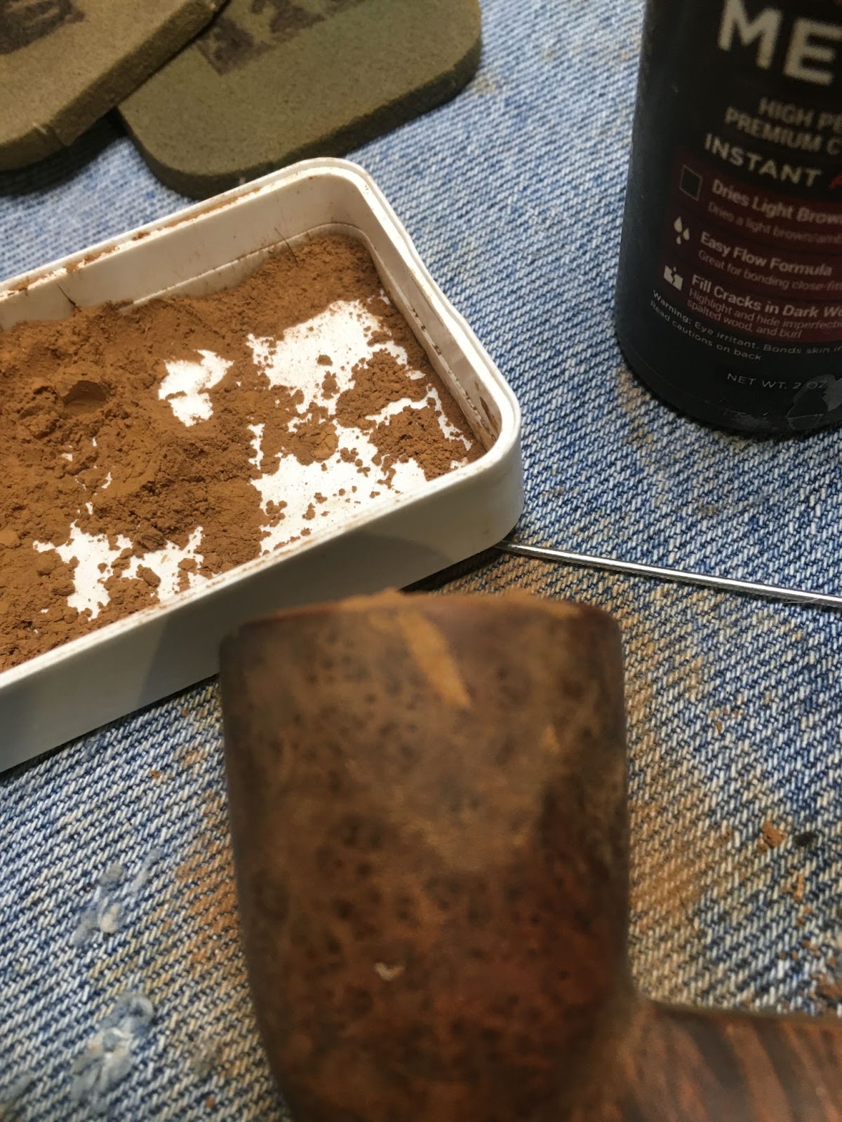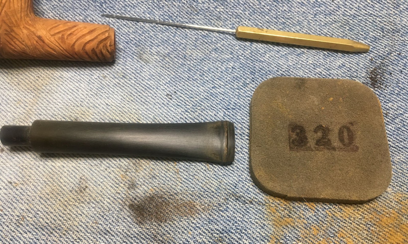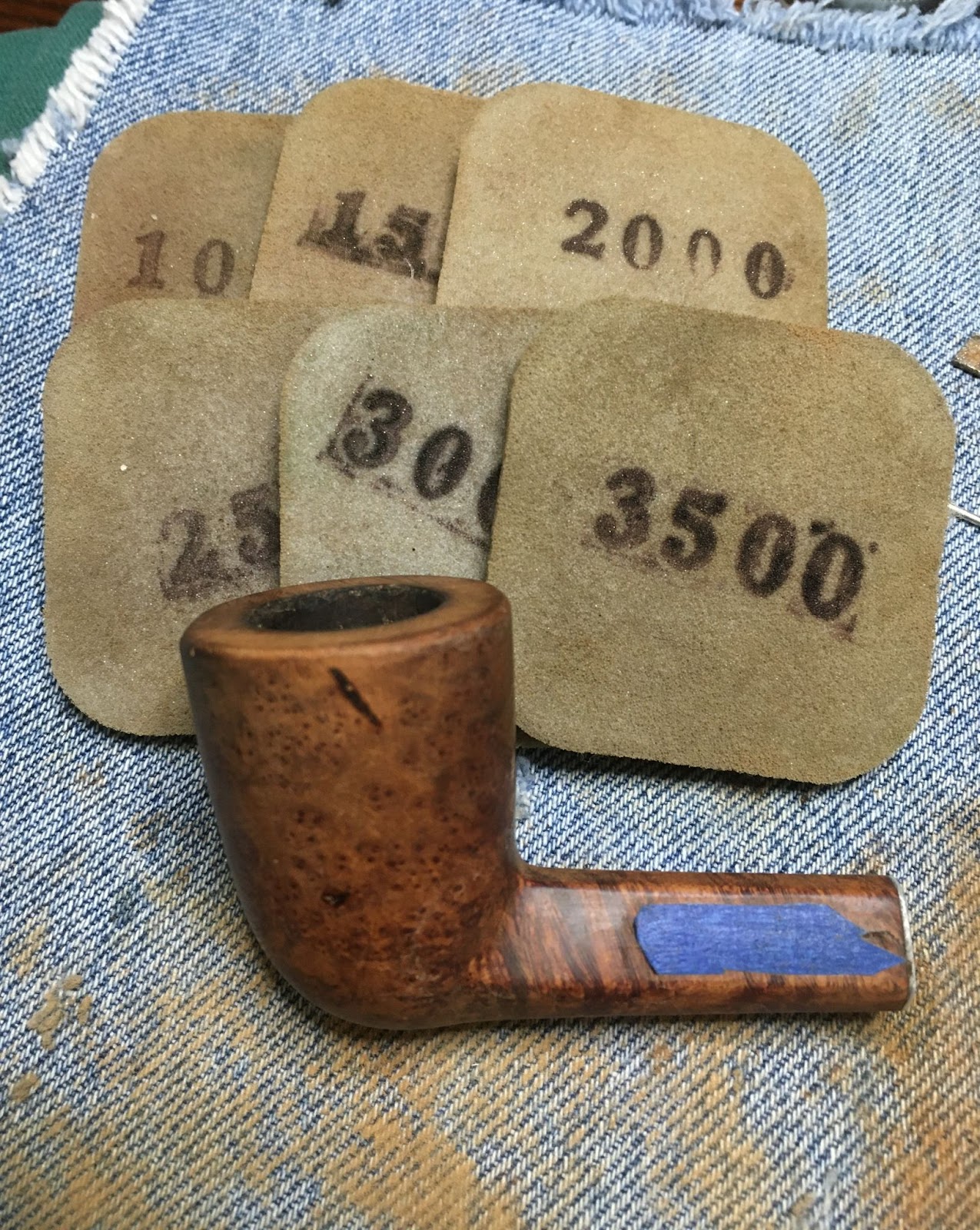 The next step was to sand the stummel using the sequence of sanding sponges from 600-3500. Between each sponge the stummel was wiped with a make-up pad wetted with alcohol.