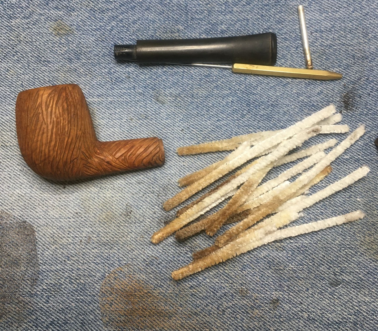 I then turned my attention to cleaning the stem. This was done with bristle pipe cleaners dipped in 95% ethyl alcohol.