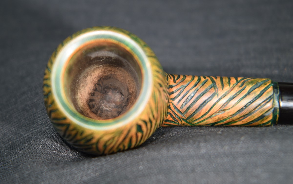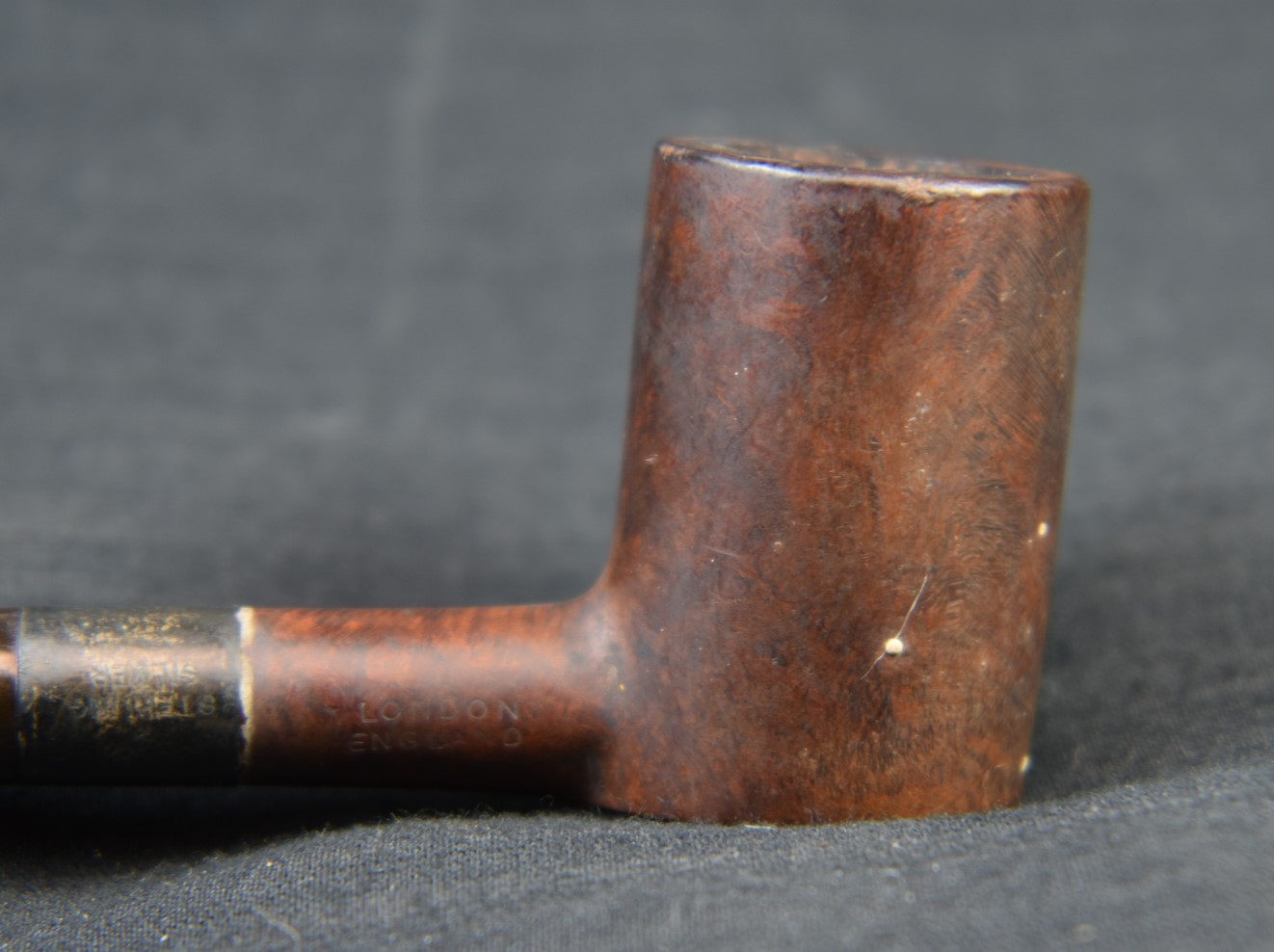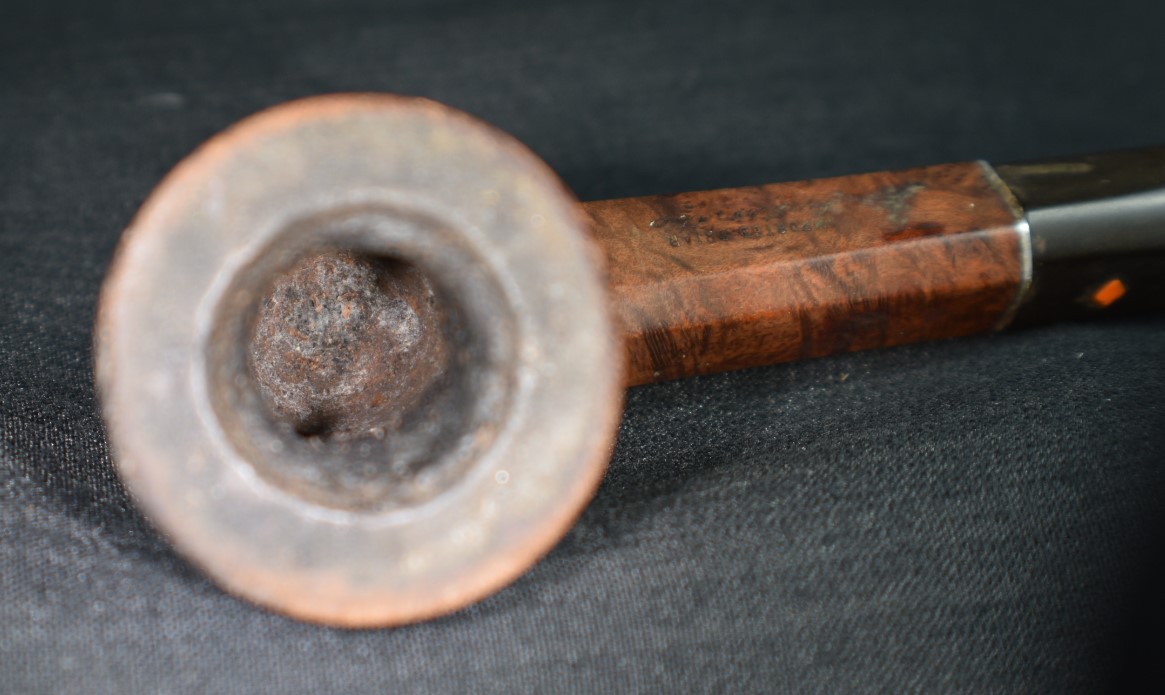 I found this Denicotea interesting because of the stamps. The DENICOTEA on the shank left and GENUINE BRIAR over MADE IN ENGLAND over 201 on the right side matched everything that I had seen concerning Denicotea pipes on pipephil.eu. The top stamp was very weak, requiring a jeweler’s loupe to read.
