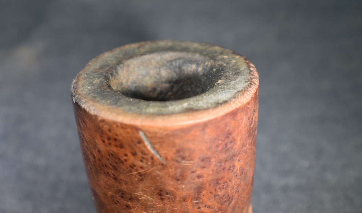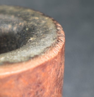 Below is a closeup of the rim damage from careless dottle knocking or perhaps using this pipe to build a deck and pound in several pounds of nails.