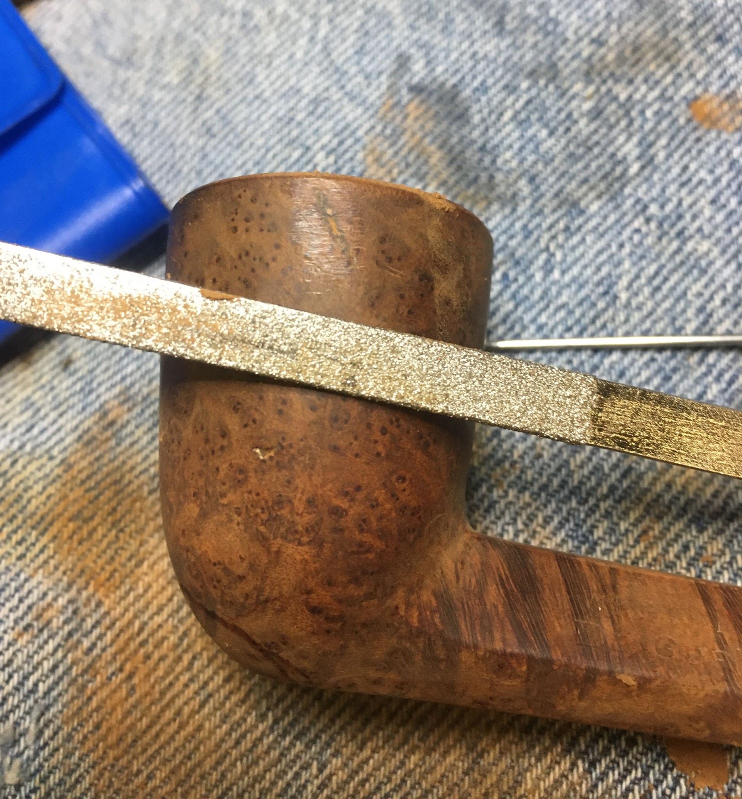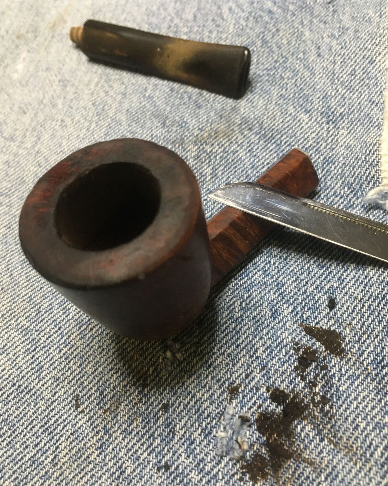 Okay, my $10 pipe had some issues. The tooth chatter, grime, dents and dings were expected. The shank crack and dottle knocked rim damage was a set of bonus problems.