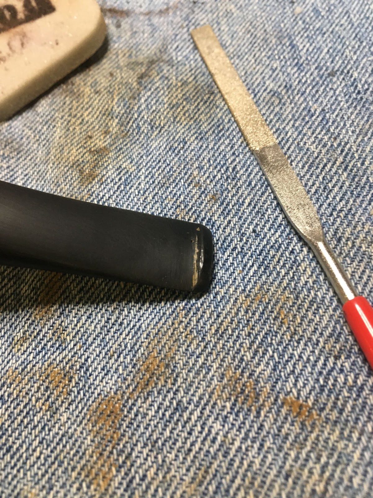 I used Soft Scrub on make-up pads to rub off the remaining oxidized vulcanite.