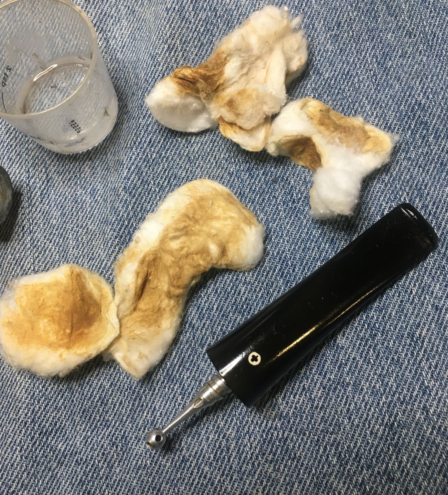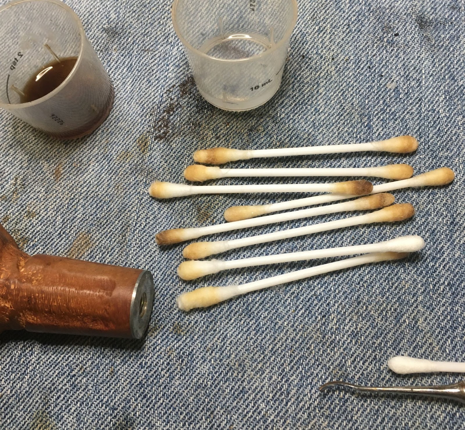 THe very light color of the alcohol led me to believe the shank was relatively clean. A few alcohol dipped cotton swabs confirmed this.