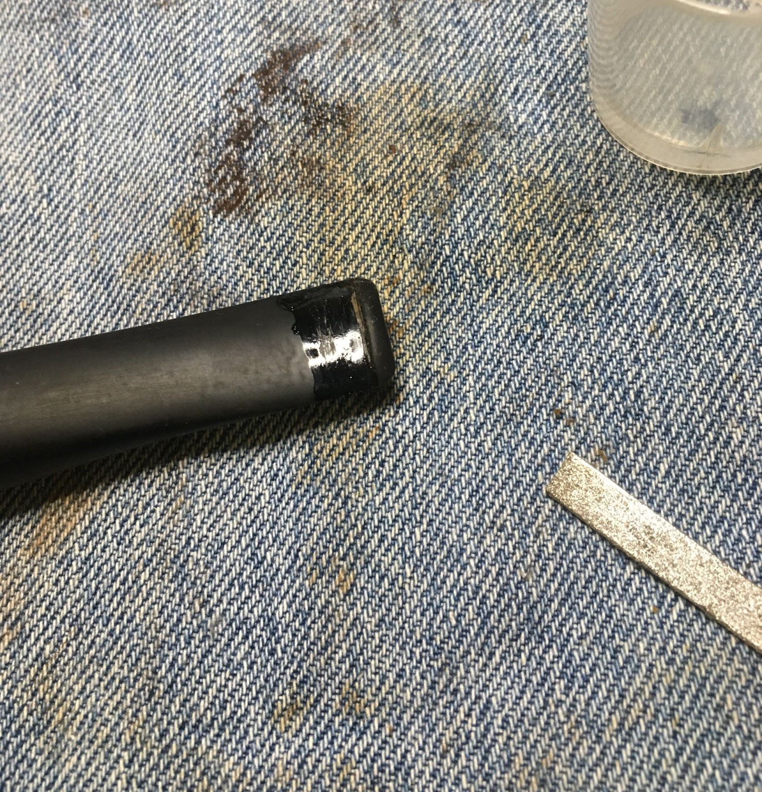 The stem looked much better. You can see the black has returned but the surface was rough and pitted.