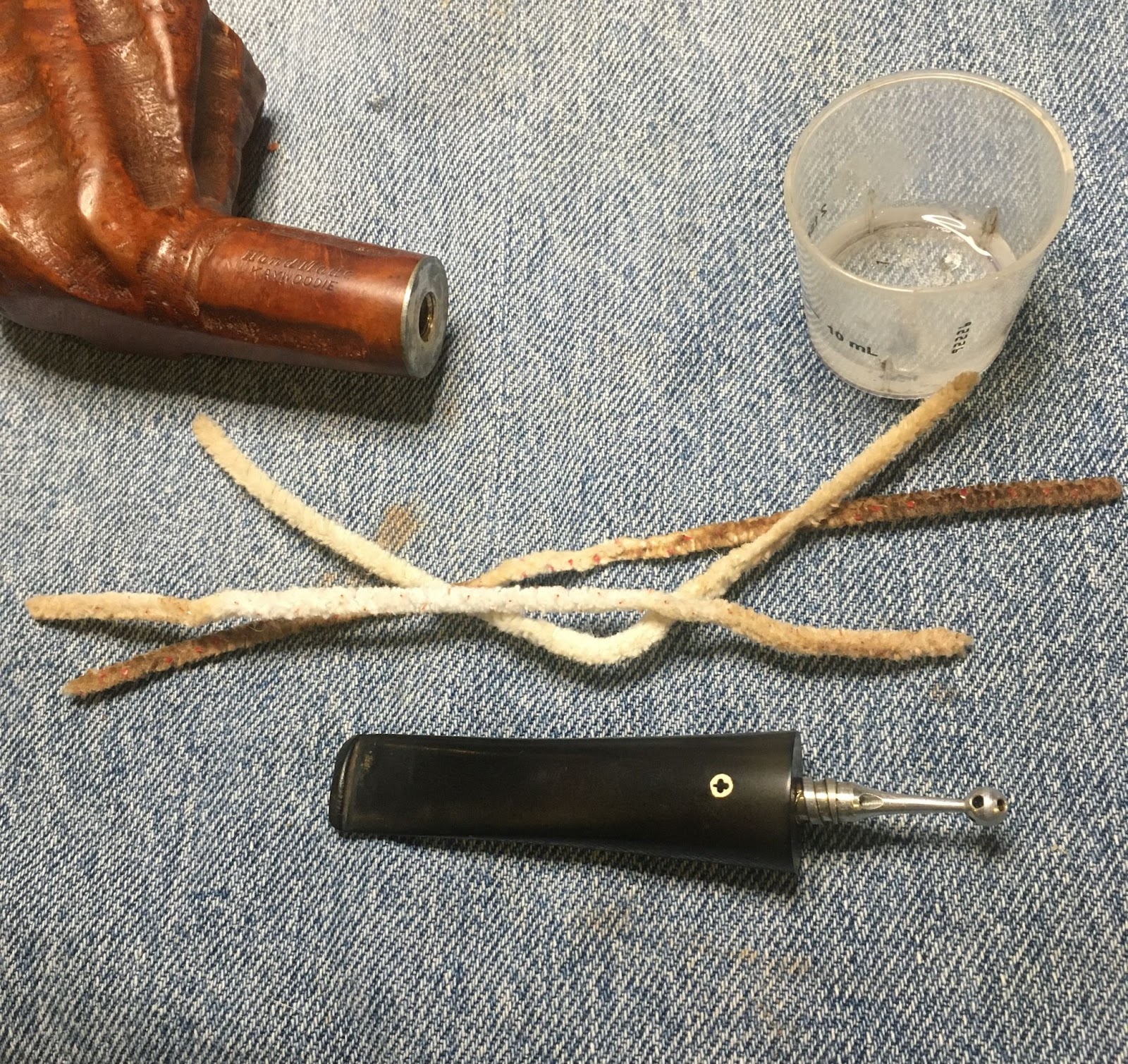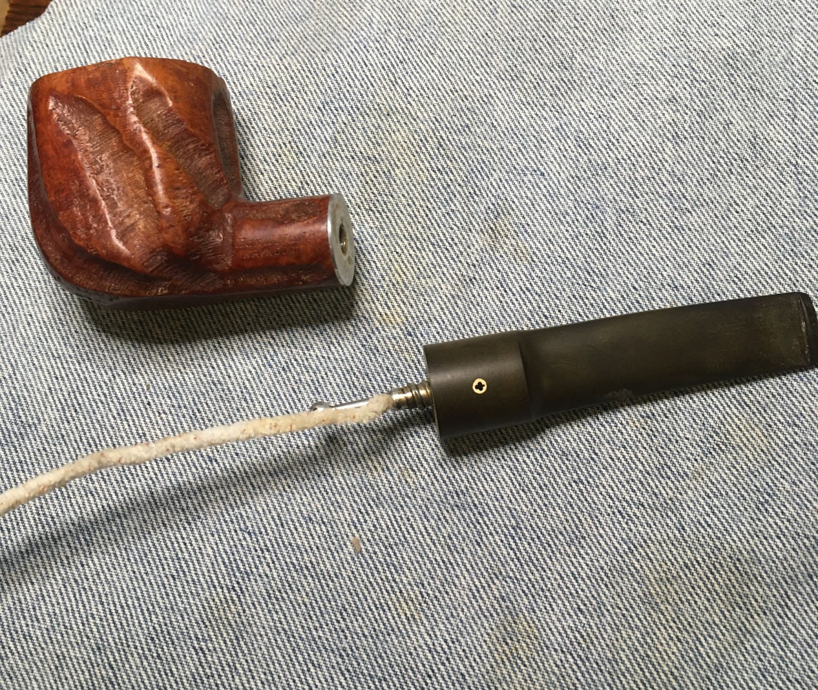 It wasn’t perfect but I was certain that it would work. At this point I actually went upstairs to type up the restoration of the second Kaywoodie HandMade. Oh, this is confusing. About 4 hours later, I returned to the deox jar to retrieve the stem. After allowing most of the excess solution to drip off the stem, I like to use a coarse cotton shop rag to vigorously rub off the remaining solution.