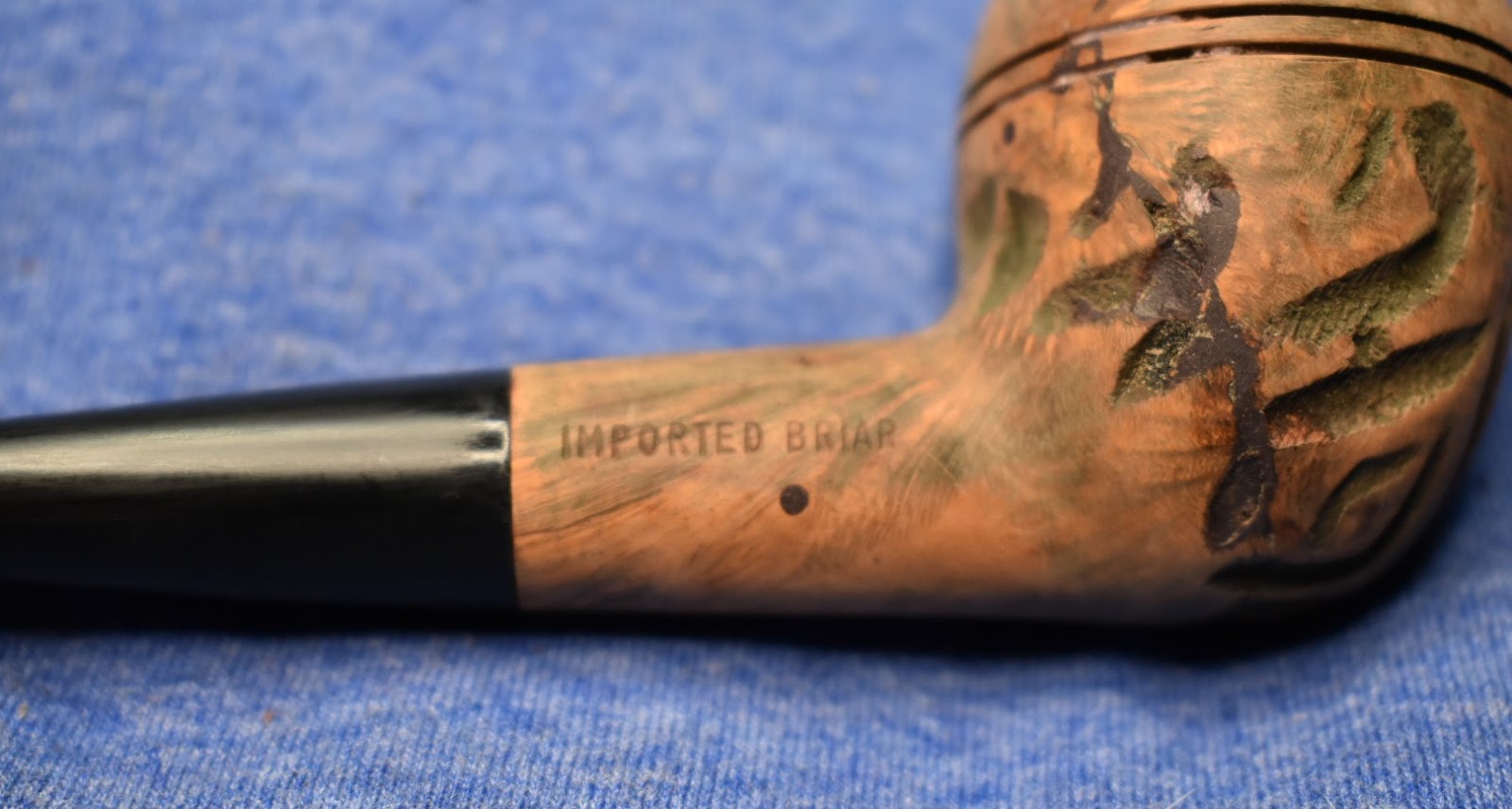 in the briar. I used Fieding’s Black Leather Dye applied with a detail paint brush to darken the recarved areas. When the dye had dried I dabbed the