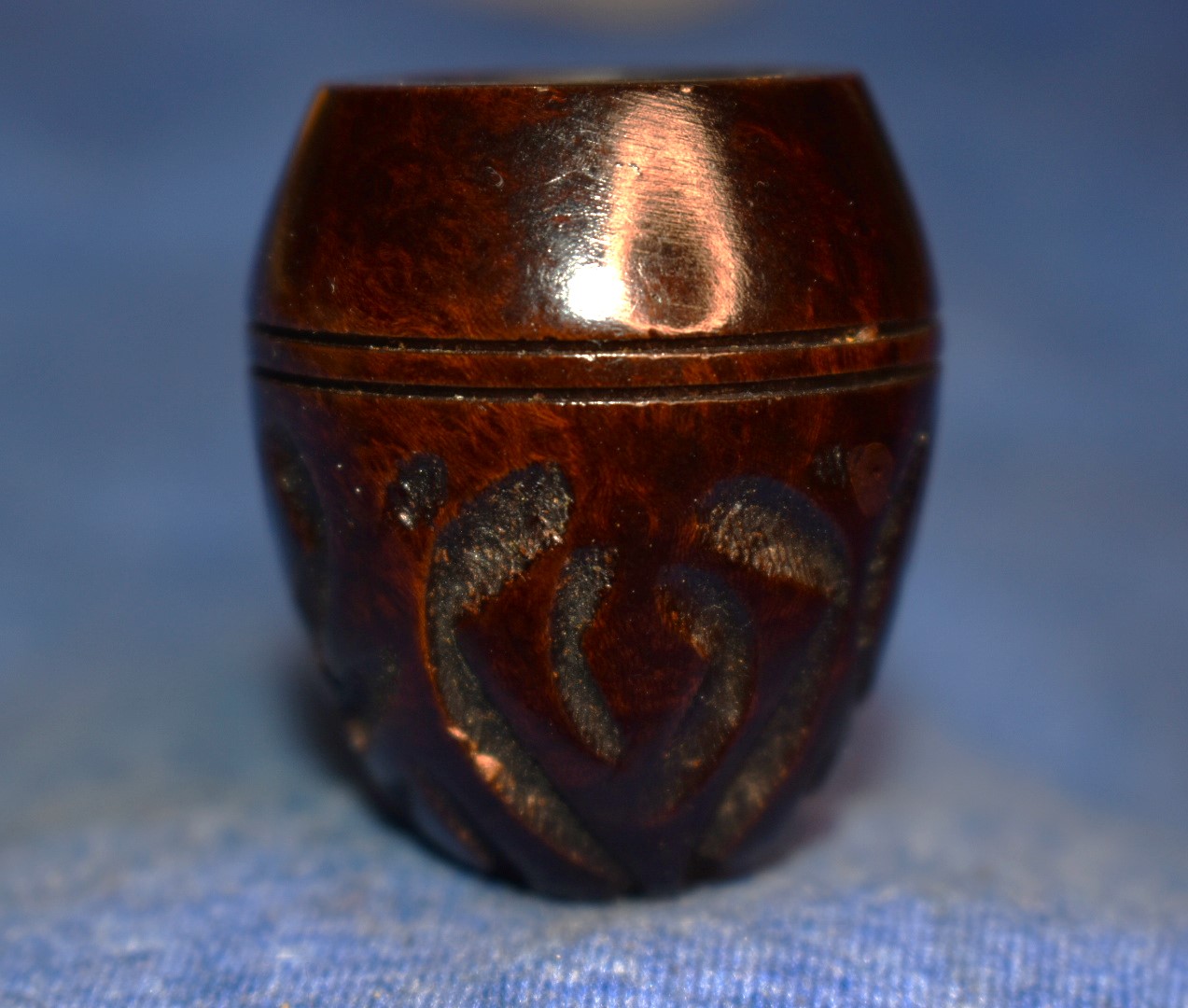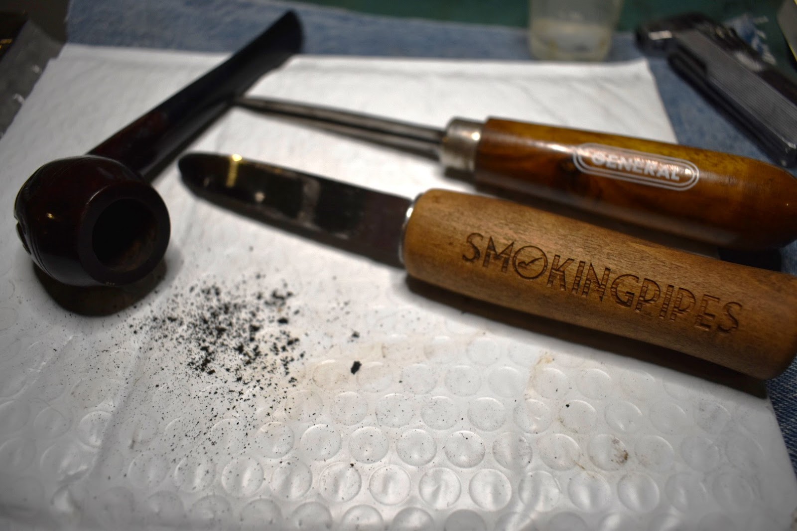 minimal residue accumulated in the chamber. I used a Smokingpipes Low Country reaming knife and a General triangular scraper for the scraping. I finished with a 320 sandpaper wrapped around a wood dowel. There was no damage to the interior of the chamber.