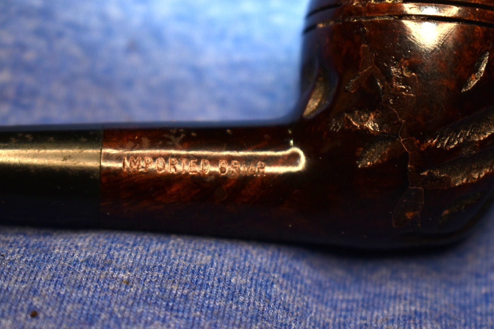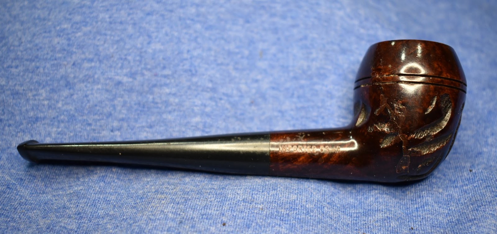 view, I could now see there were some serious fills that had been made to this pipe. Along the right side of the stummel there must have been a gouge that ran from about shank high to right above the bead. The rustication attempted to conceal the gouge but there had been some filling as well. I used a fly tying bodkin to remove some of the old fill material that was loose or softened. I then applied brown cyanoacrylate (CA, super glue) to the areas where there were small pits that I wanted filled. I quickly used the 1500 micro-mesh pad to smooth these areas. The dust from the micro-meshing was incorporated into the CA and filled the small pits. I allowed the stummel to dry overnight to rid it of the acetone that had soaked into the briar. Acetone is very volatile and would be completely gone by morning. Below are photos of the pipe stripped of finish.
