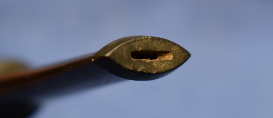 I then poured a little of the Castille soap onto the nylon brush and scrubbed the shank with the soap. The soap was rinsed with warm water. I then repeated the alcohol scrub followed by another Castille soap scrub. I continued alternating between the alcohol and soap. When the alcohol turned dark brown from dissolved tars I replaced it with new alcohol. This alternating scrubbing lasted for three days. Okay, that is a slight exaggeration but it seemed like a long time. Every once and a while I’d go back to the cotton swabs or a piece of paper towel wrapped around a round needle file and check their color. Eventually the cotton swabs returned clean.
