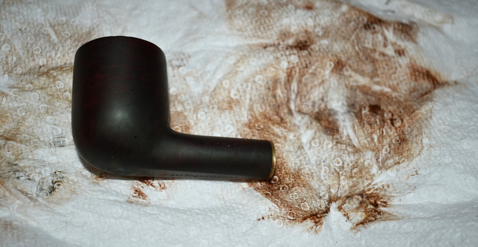 The Murphy’s was rinsed with warm water and dried with a cotton dish towel. Upon returning to the workbench I decided that the charred briar around the rim needed to be removed.. I used a technique from a German Facebook buddy, Sascha Mertens, where a coating of Vaseline was applied to the rim and the charred wood was gently scraped with a sharp knife.