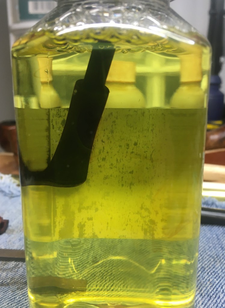 I place the stinger into a medicine cup with 10ml of 99% ethyl alcohol to start it’s cleaning.