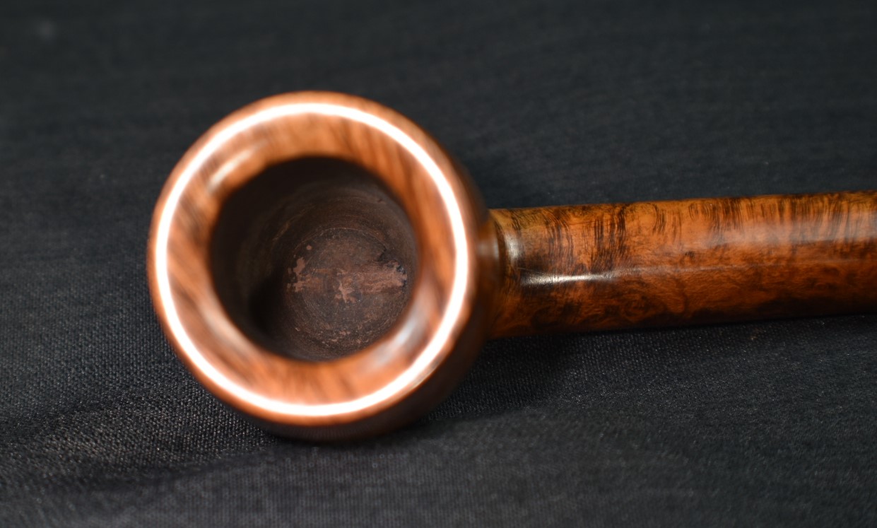 The PipNet and the #1 blade was only used to clear the bottom of the tobacco chamber as this chamber was quite conically bored. The #2 blade did most of the work reaming the chamber. The Smoingpipes Low Country Reamer and the General triangular scraper were used for some light clean-up work. The chamber was then sanded with 220 sandpaper wrapped around a wood dowel.