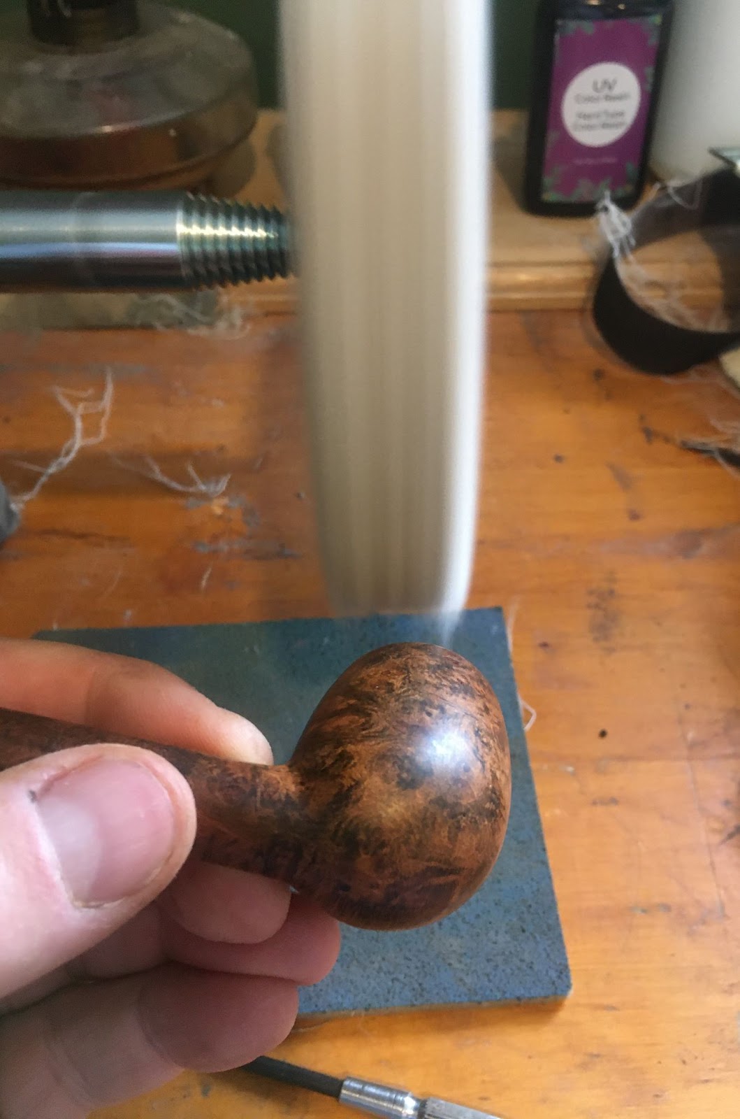 The pipe was then taken to the buffer where the pipe was given several coats of carnauba wax.