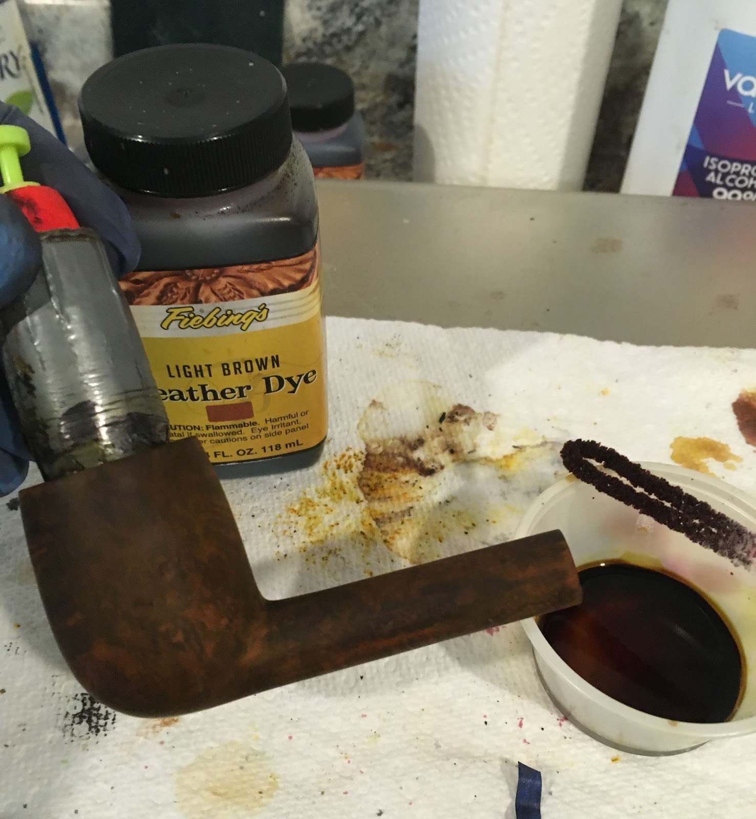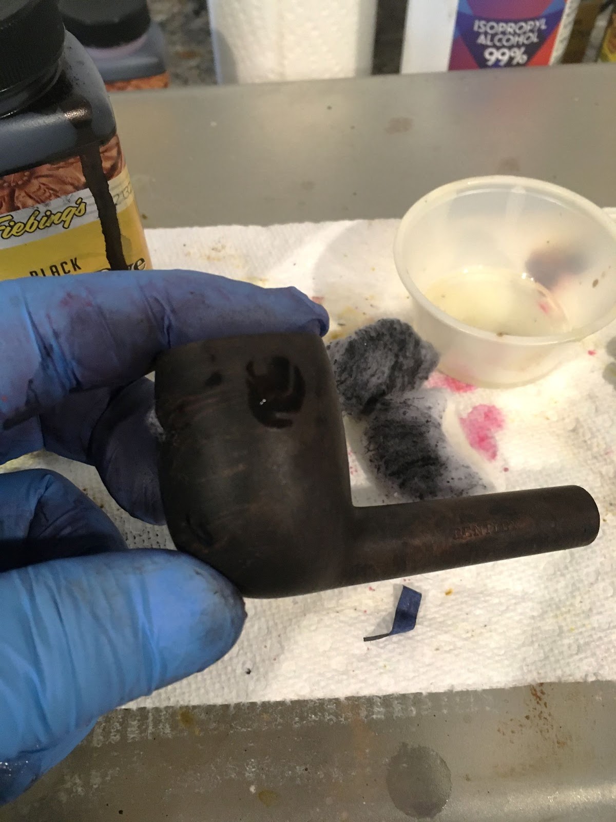 I then wiped the stummel with acetone on new make-up pads. This removed more of the clear coat finish and more stain.
