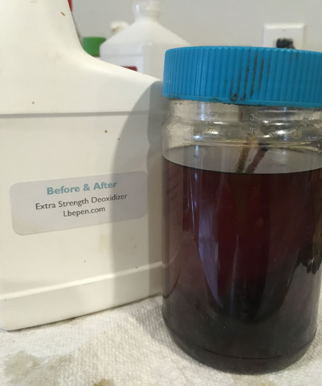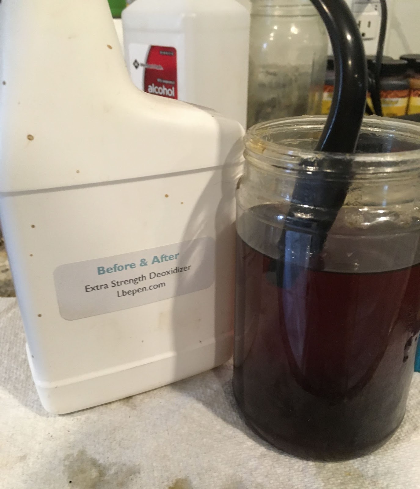 The next day the stem was removed from the deoxidizer and allowed to drip excess solution back into the jar for a few minutes.
