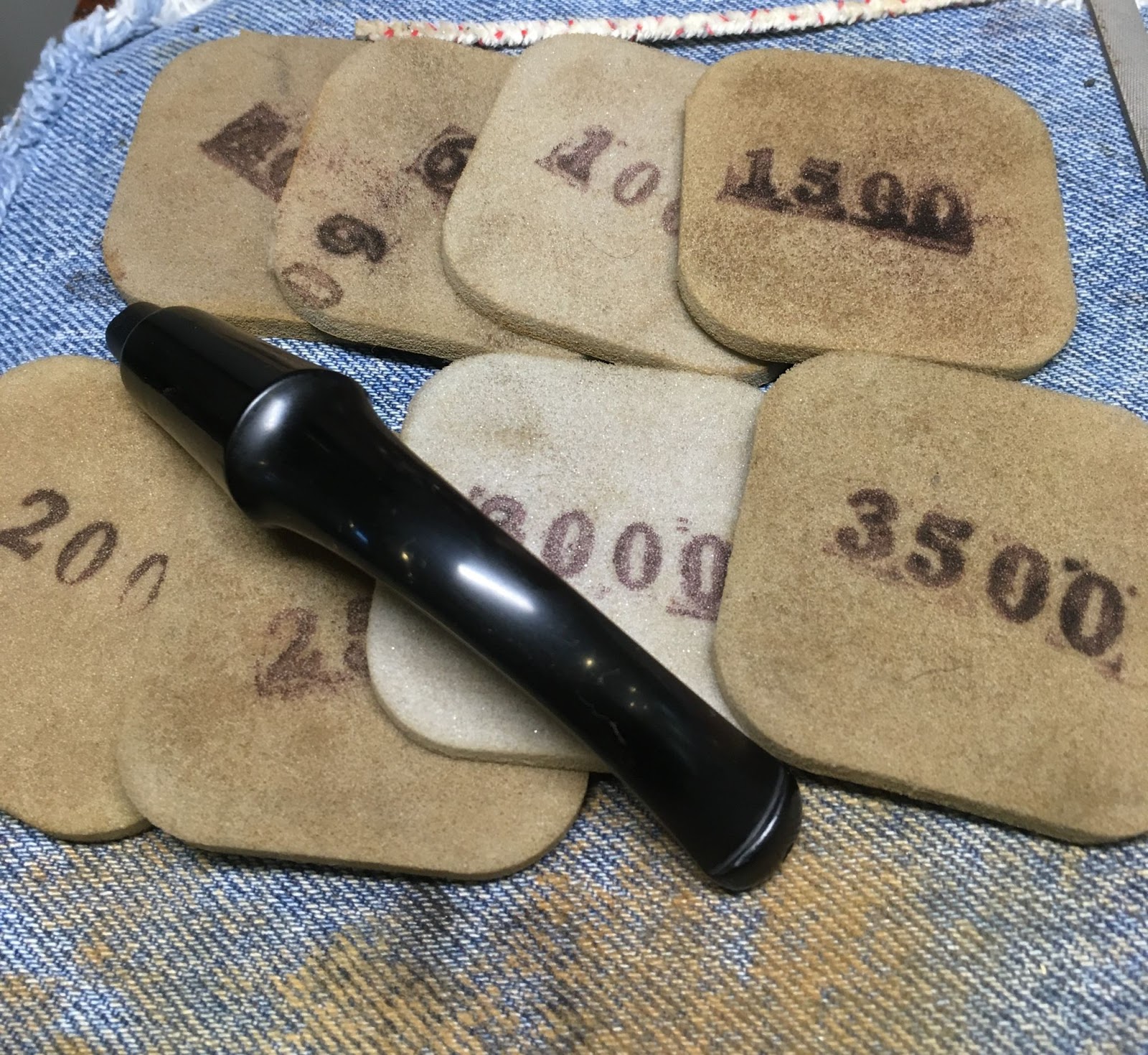 Micro-meshing followed the sanding. The 4000-12000 micro-mesh pads were used with stummel and stem wiping as above except the stem received Obsidian Oil in place of mineral oil between each pad.