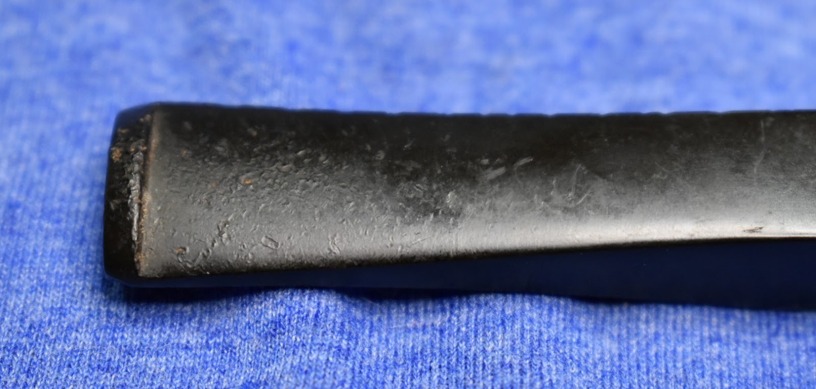 charred wood. I would wipe the blade on a make-up pad and repeat. When additional petroleum jelly was needed I applied more. Once finished removing the charred areas I very lightly topped the rim using 400 sandpaper.