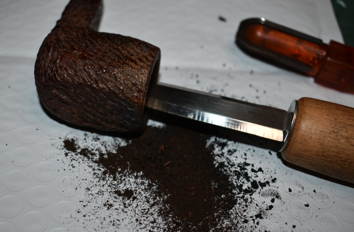 The Scotte kind of worked. This bowl was slightly larger than the Scotte tool as well. I was able to use the Scotte by pushing it to one side of the bowl as I rotated the stummel. The remaining