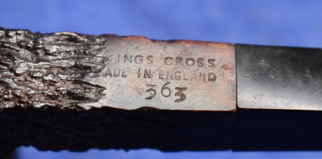 I recently won an auction for 6 Kings Cross pipes. They are a mixture of 2-Made in England, 3-Made in France and 1-no Country of Manufacture (COM) just “ALGERIAN BRIAR”. I have chosen this billiard as the next restoration subject. Below are the photos of how it appeared as I removed it from the box: