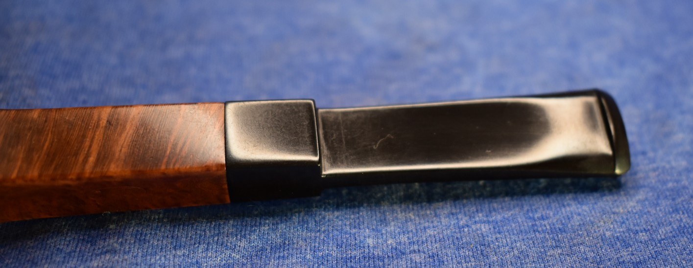 The last task was to rid the stem of the tooth chatter and micro-mesh and polish it. All of my diligent photography fell short of documenting this stage of the restoration. “Hey, claim the brain damage made you do it. Or, not do it.” The mineral oil was wiped off the stem. I had already painted the tooth chatter with a lighterearlier. I did not think that the remaining tooth chatter was deep enough to require rebuilding the stem or filling of the dents with cyanoacrylate. I used an emery board to remove material around the dents