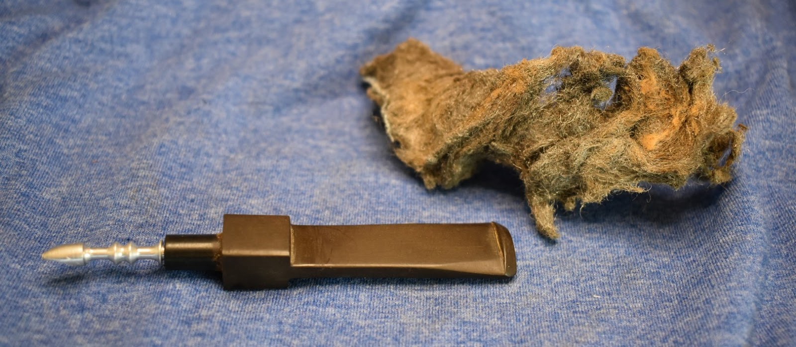 The first thing I addressed was the stem issue. Looking down the airway with a flashlight I could see lots of yuck. Yuck is the technical term for any unwanted smoking residue. I don’t think I had ever seen chunks of yuck