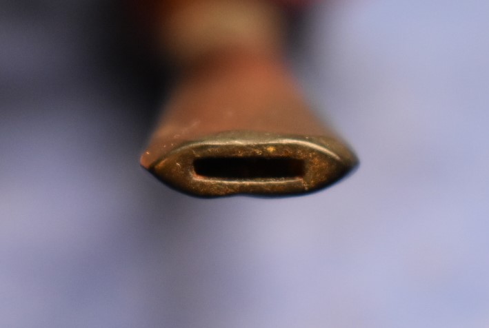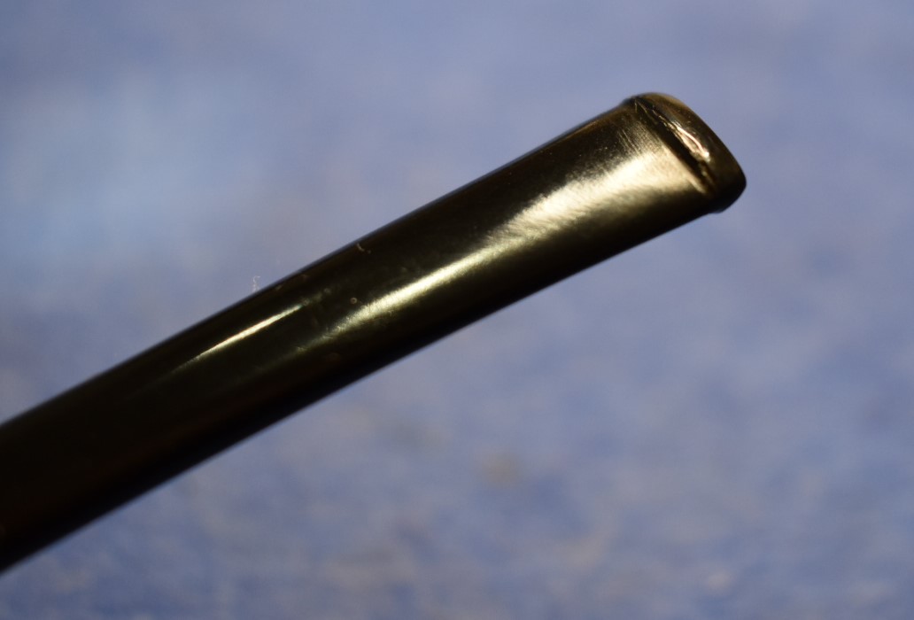 The above layer had been filed smooth then sanded with 220 sandpaper. I was now sure that the UV resin mixed with carbon powder would work to fill the chewed-through area of the Greenwich stem. Test successful!