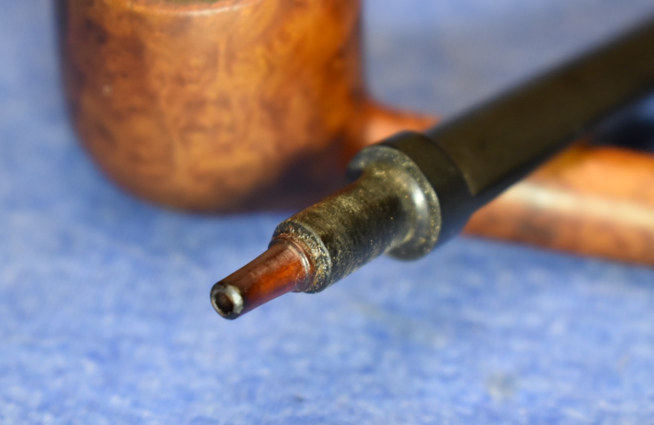 The stummel was ready for finish sanding but the stem needed to be attached for that. This meant that the stem needed to be the next focus. There were no deep dents from clenching nor any significant tooth chatter. Oxidation