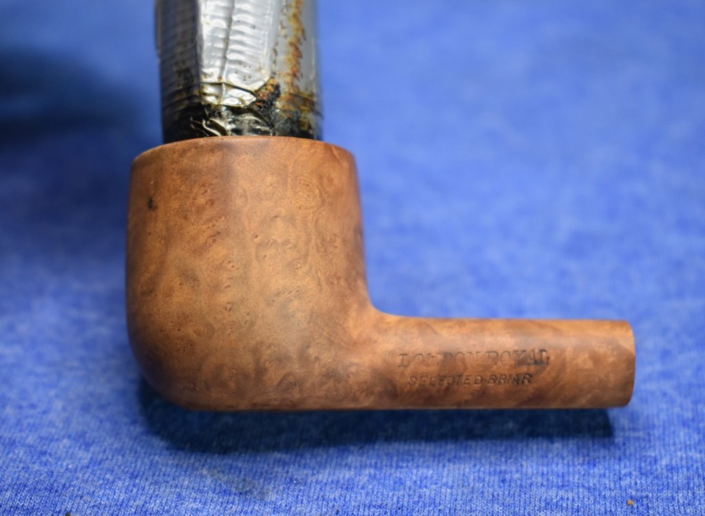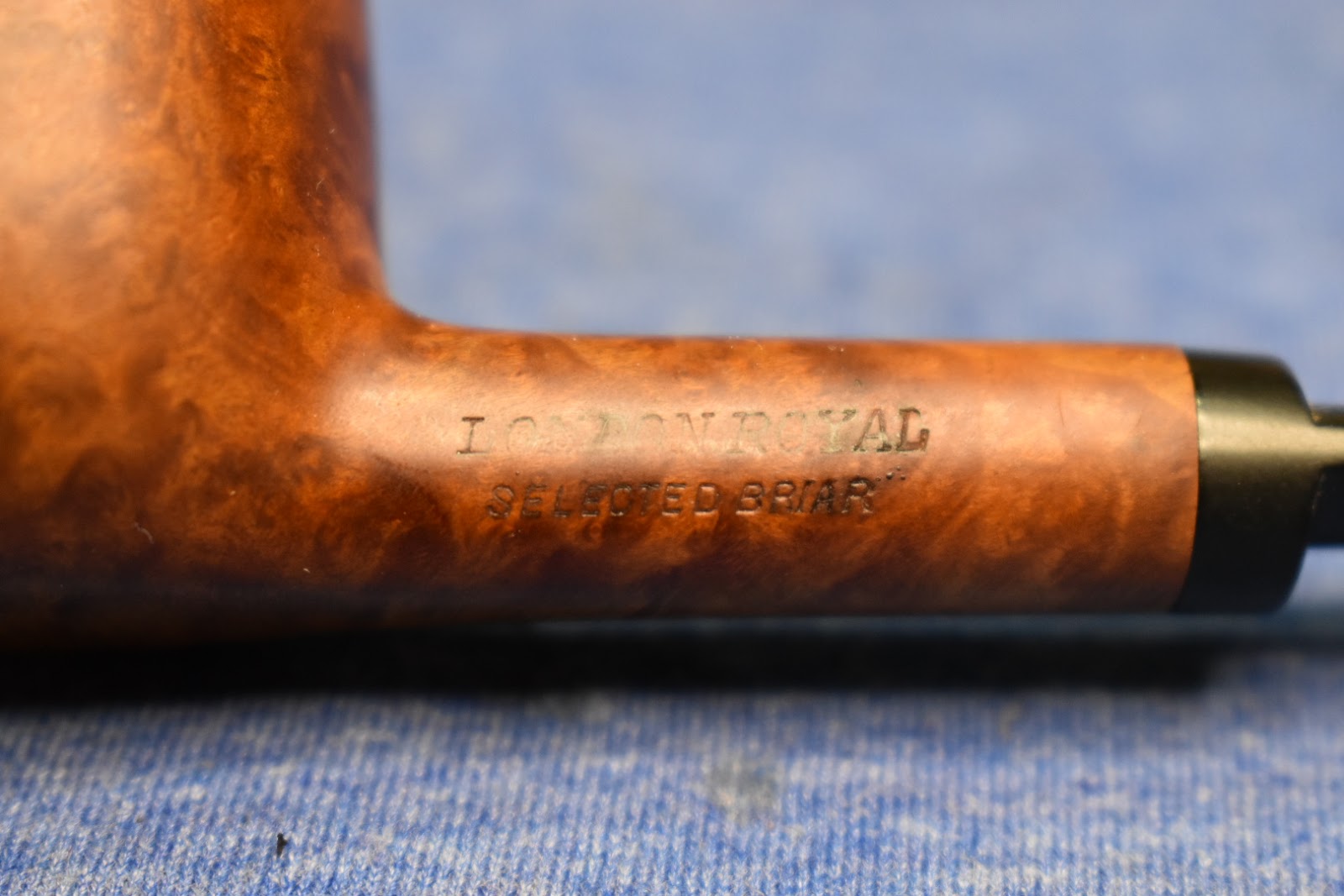 In looking at the photos you can see that this London Royal is in need of; a cleaning, reaming, rim work, stem refurbishment, a button rebuild, general sanding/refinishing and maybe a dye job (to emphasize wood grain). This looks like a fun one.