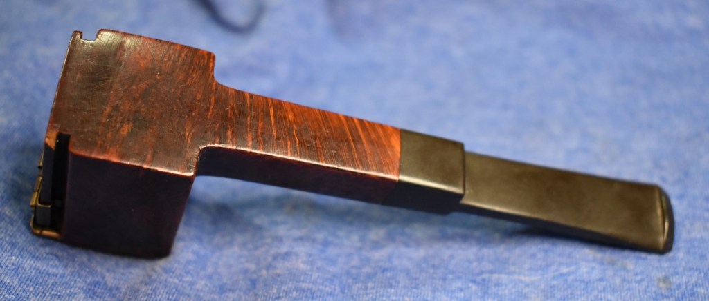 Everything a guy who loves to restore old pipes would possibly want. It is going to need the following: Tobacco chamber reaming, rim topping, scratch removal, fill replacement, button reconstruction, figure out why the stem won’t go in all the way, general cleaning and surface restoration. Better get started, eh?