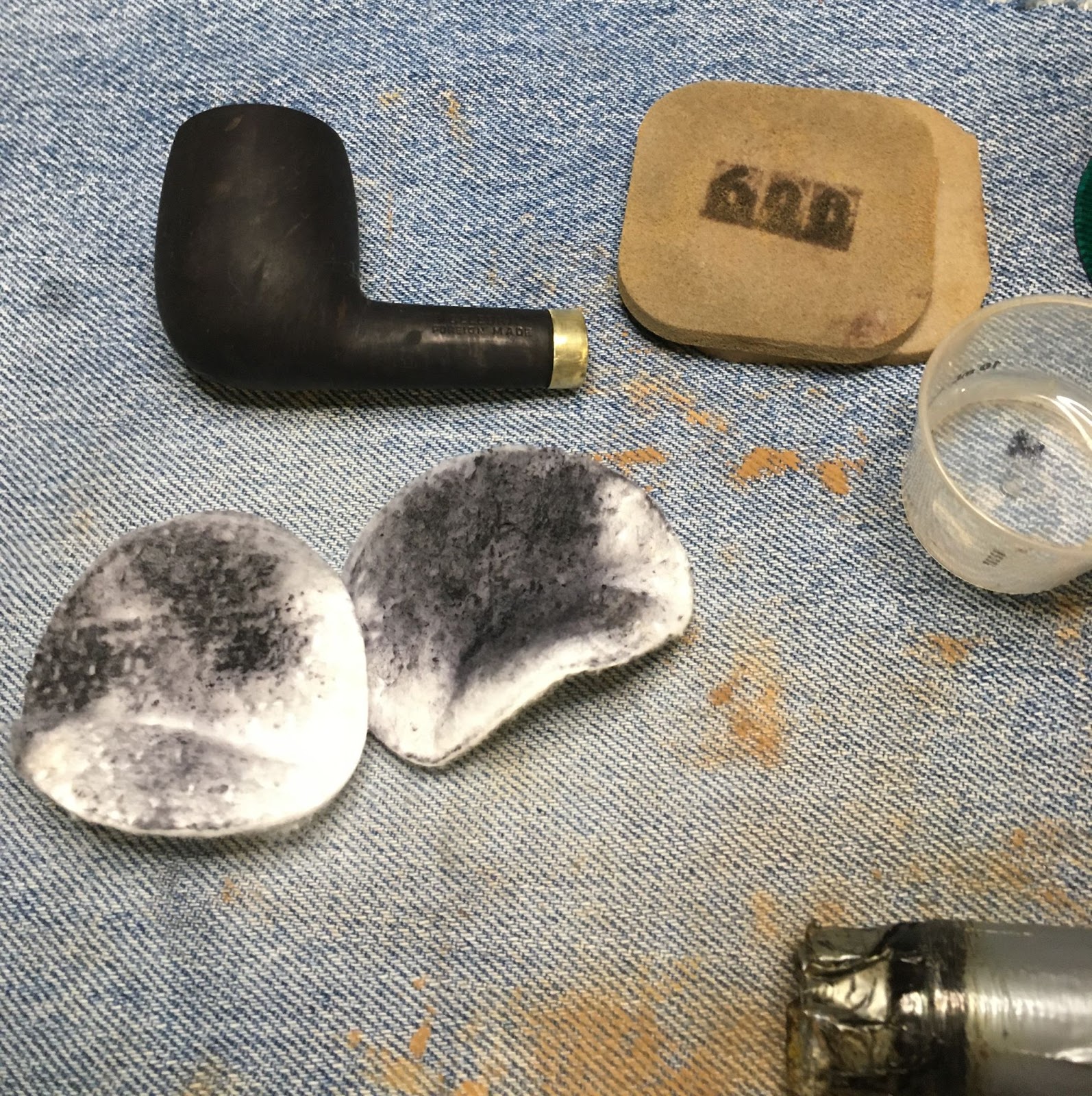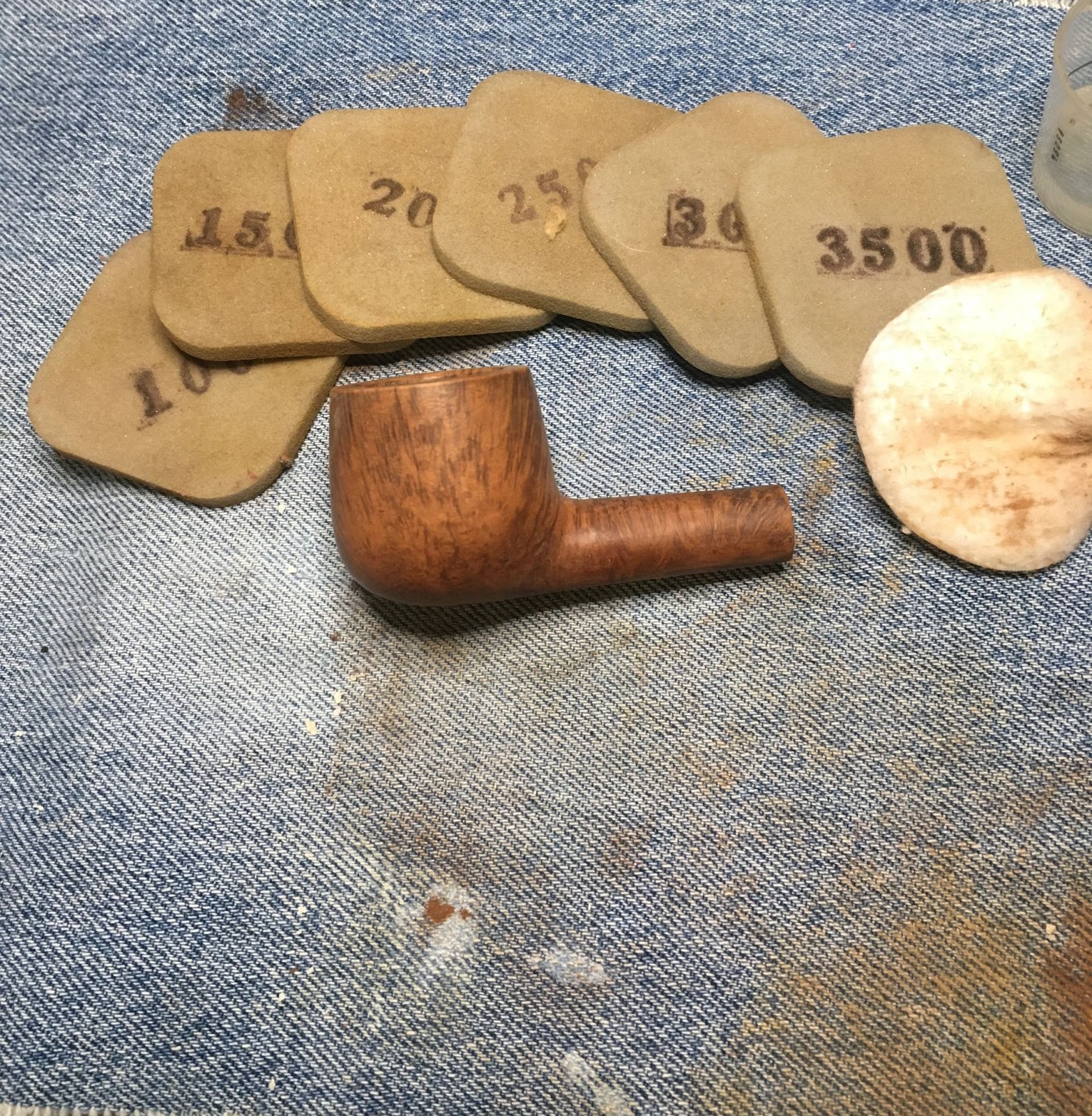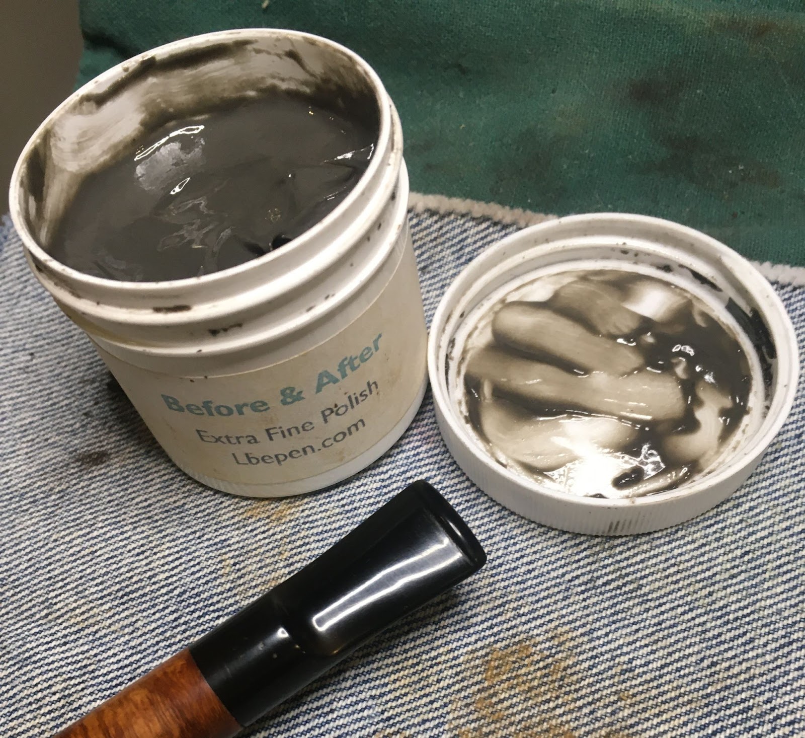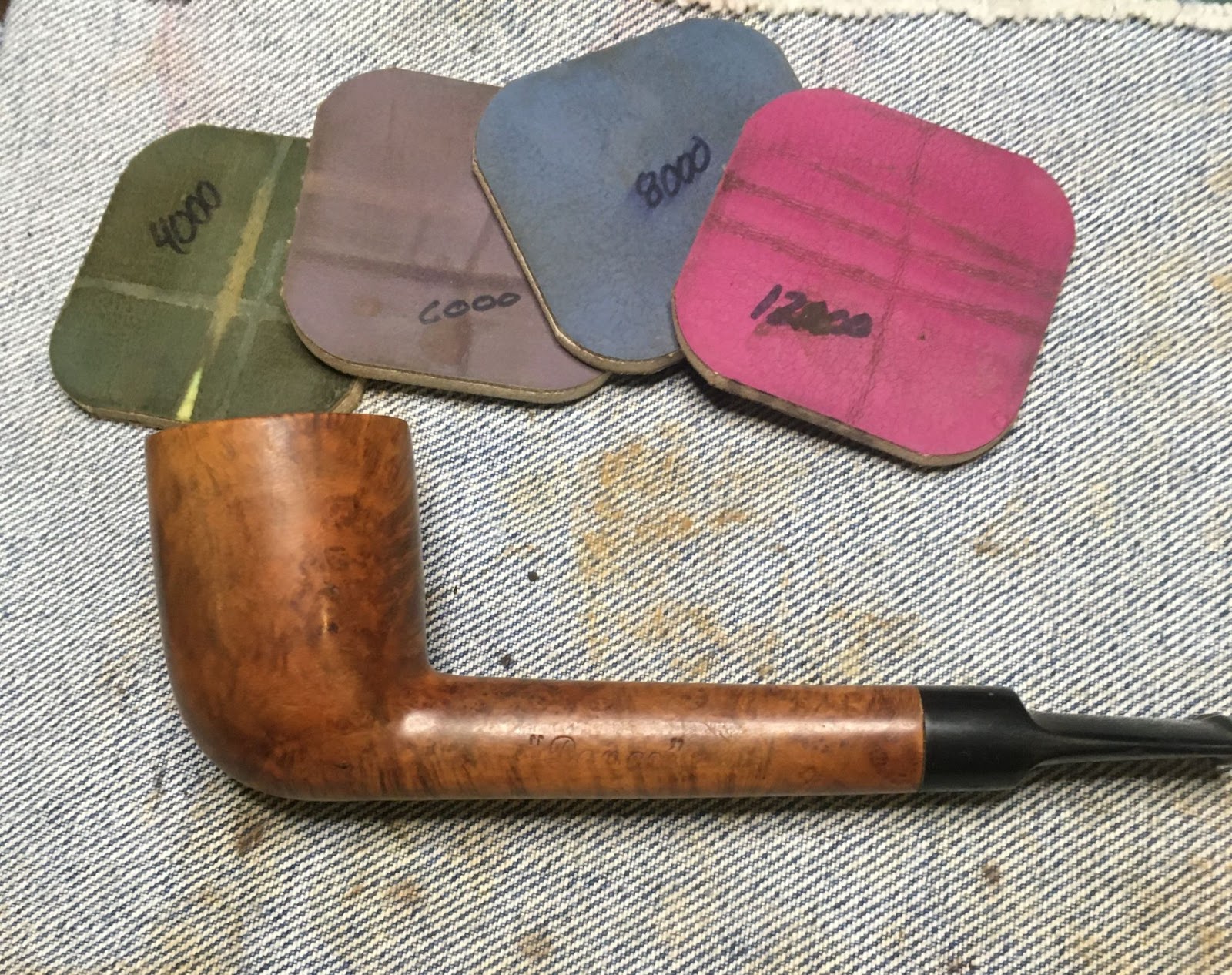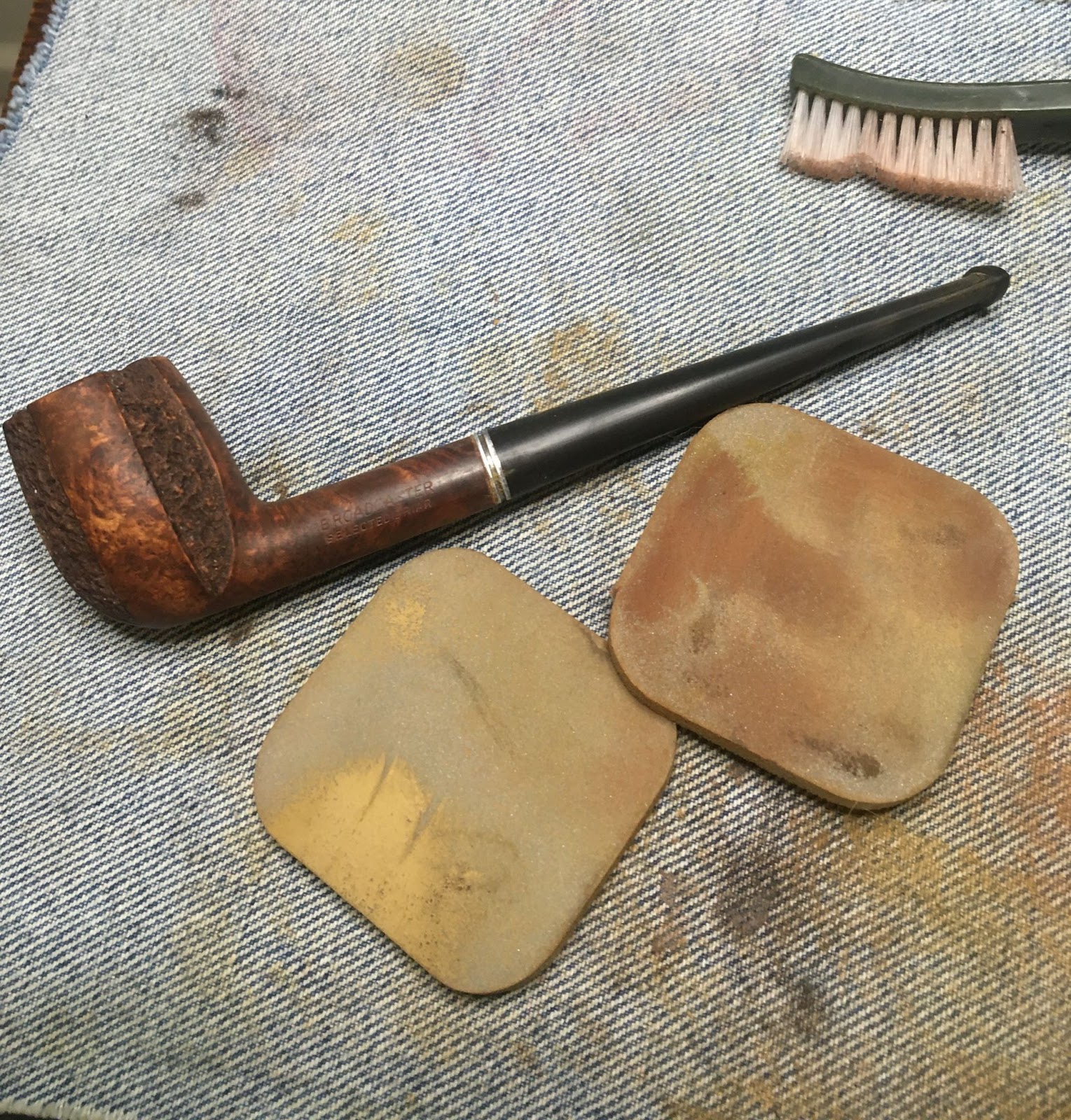 then rubbed in with a baby toothbrush. The was was allowed to dry for 2 hours then rubbed with a clean terry cloth towel. I took the pipe back to the buffer and applied a couple of coats of carnauba wax to the stem and the smooth stamp area on the shank.