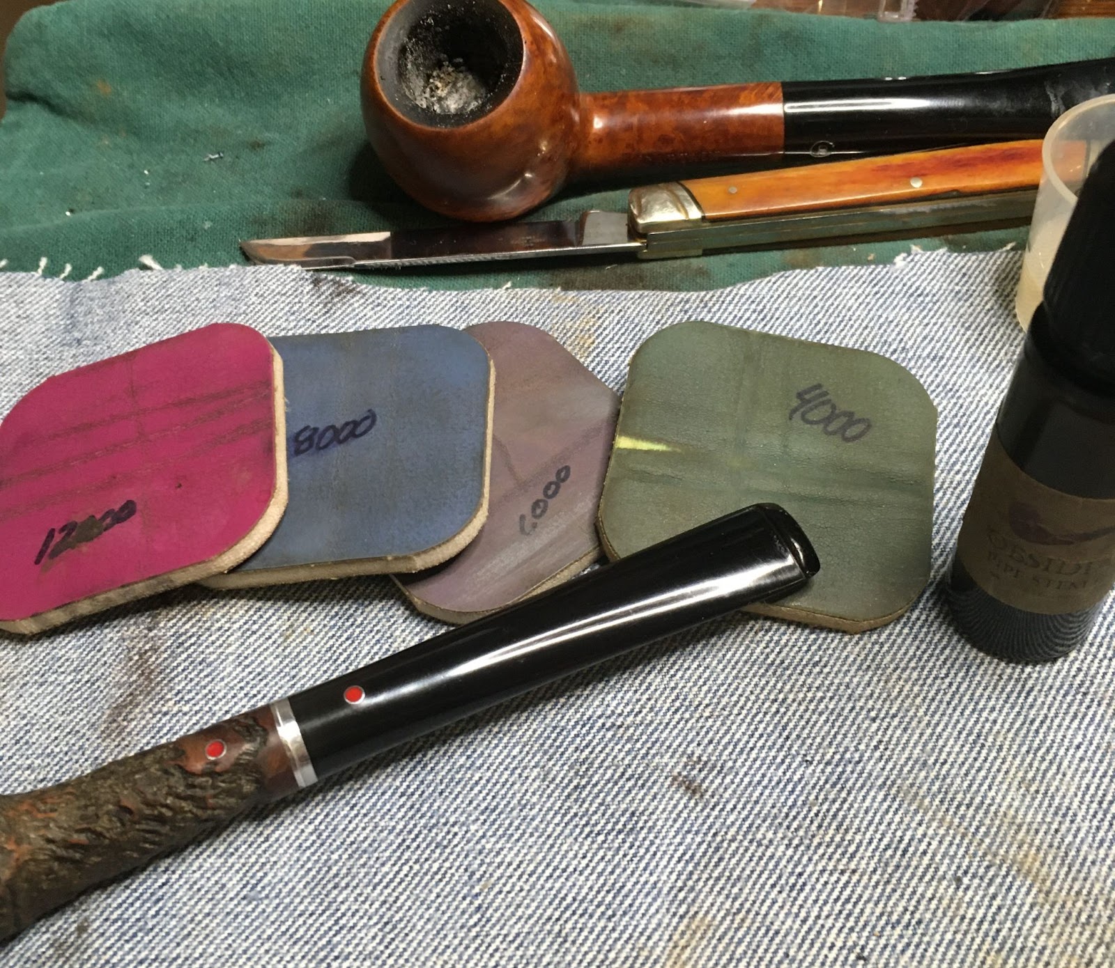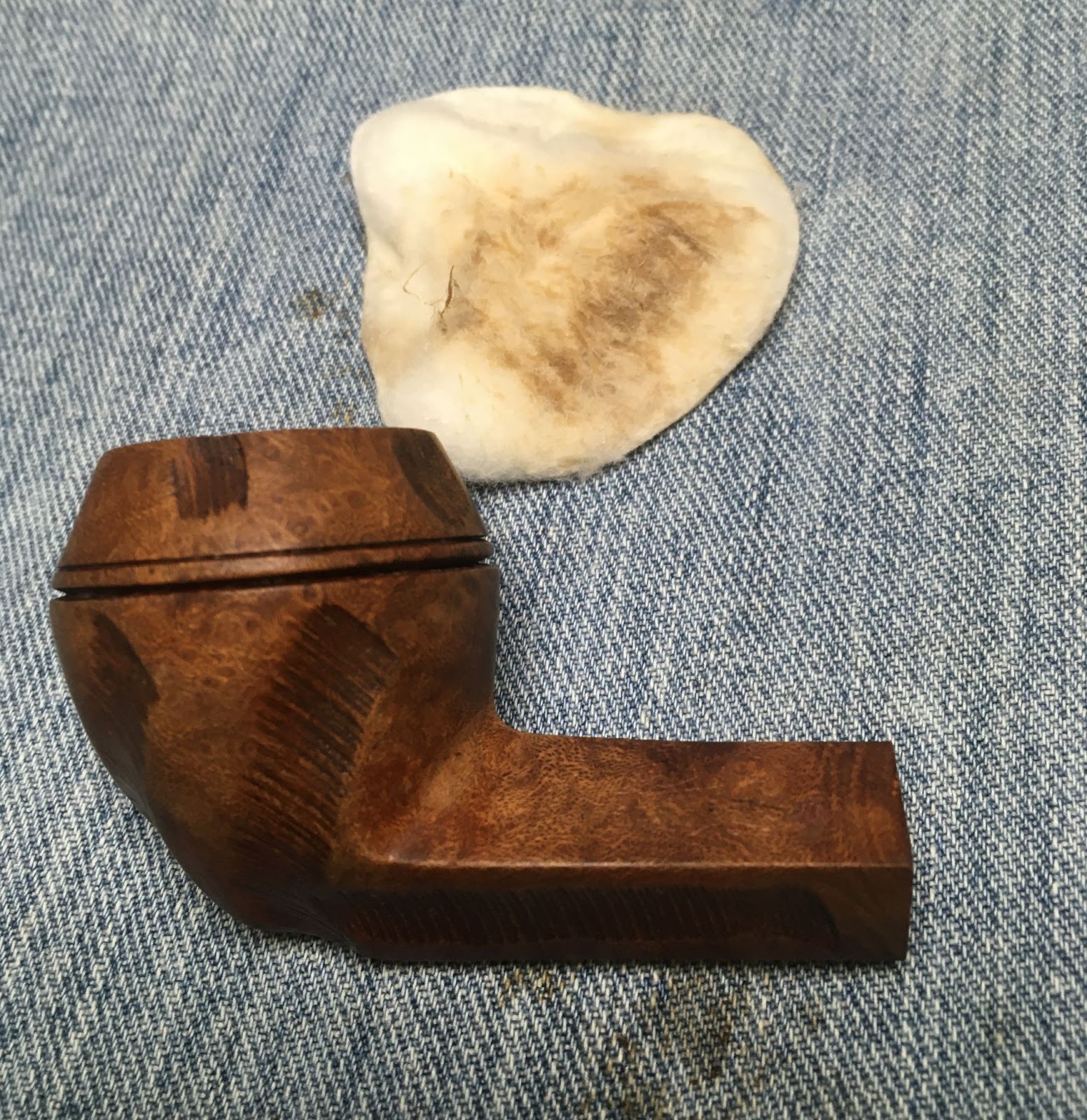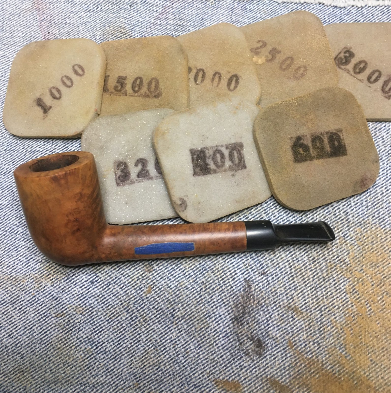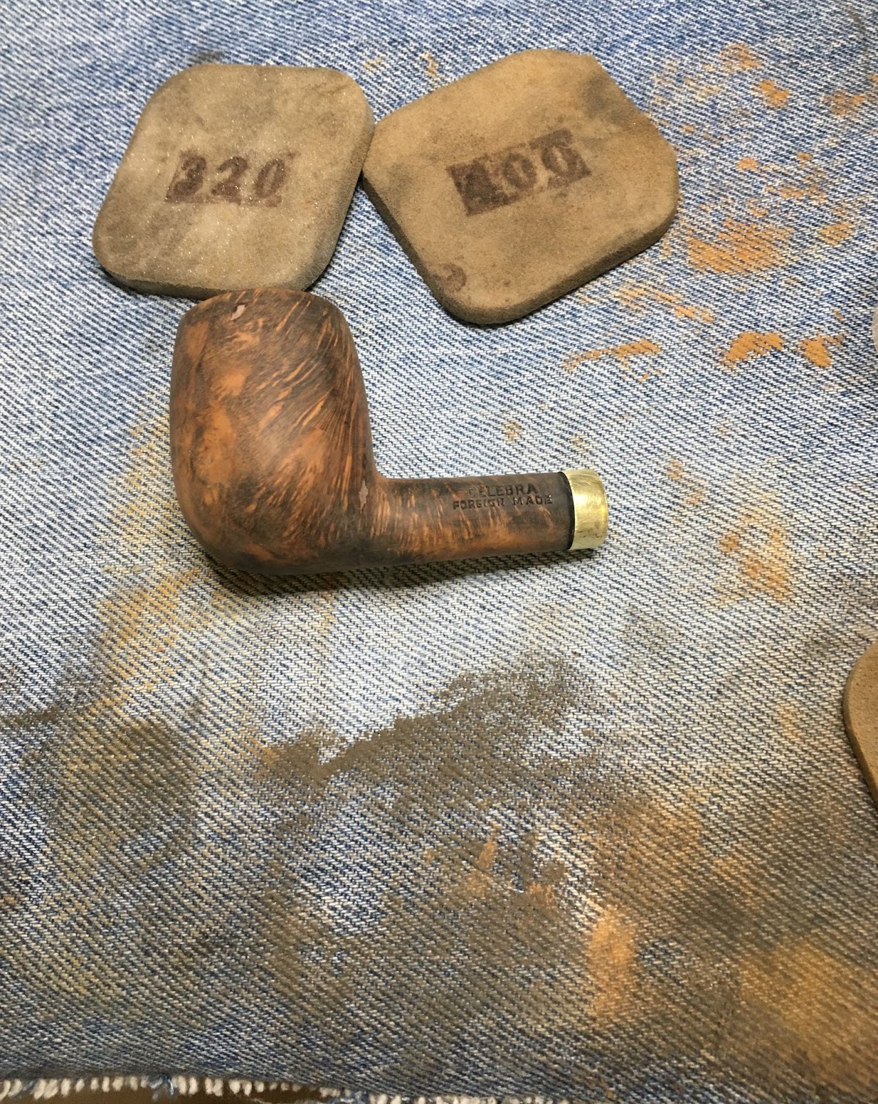 then rubbed in with a baby toothbrush. The was was allowed to dry for 2 hours then rubbed with a clean terry cloth towel. I took the pipe back to the buffer and applied a couple of coats of carnauba wax to the stem and the smooth stamp area on the shank.