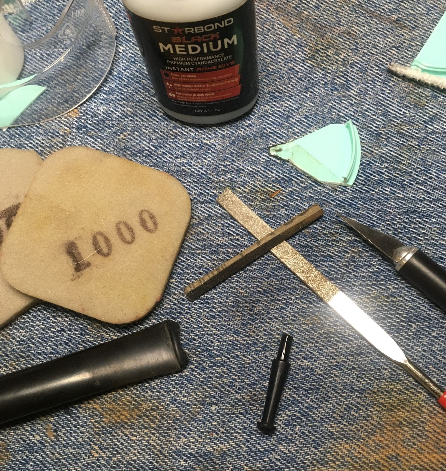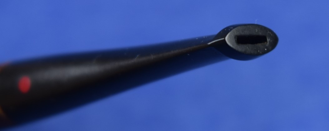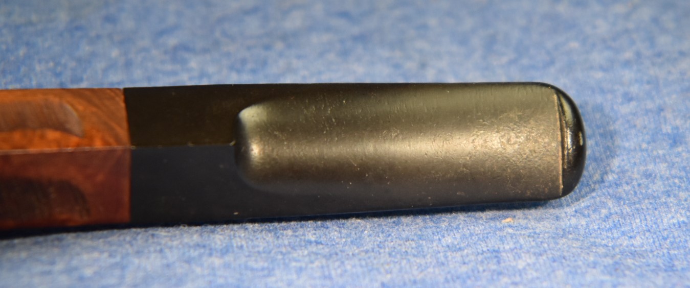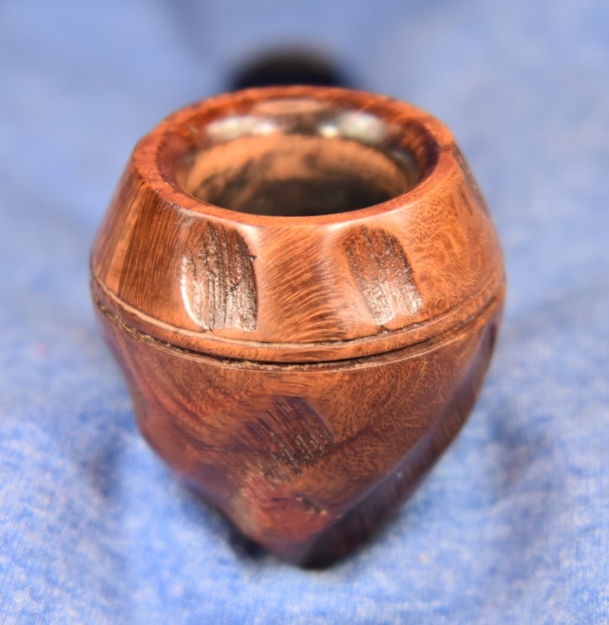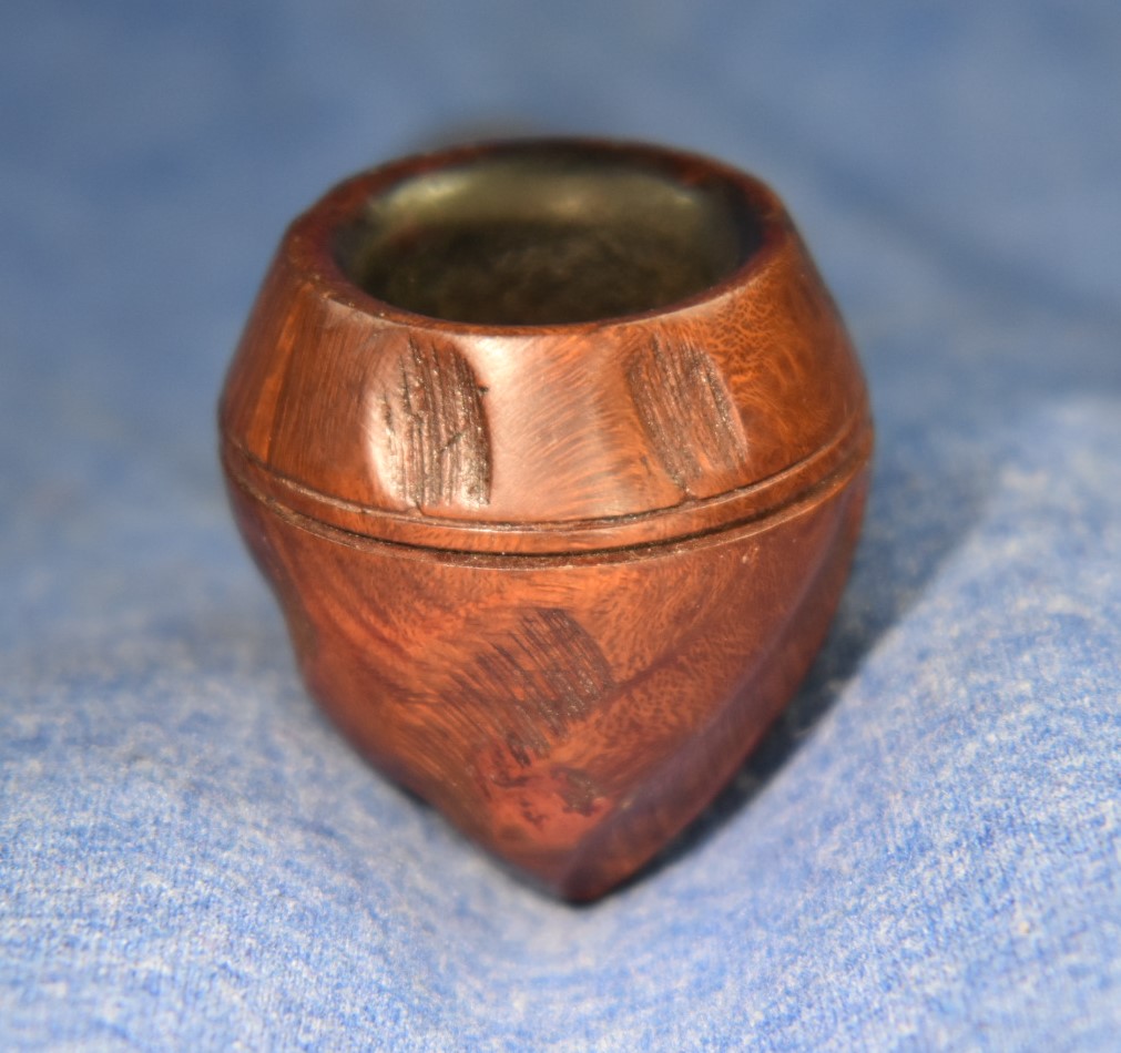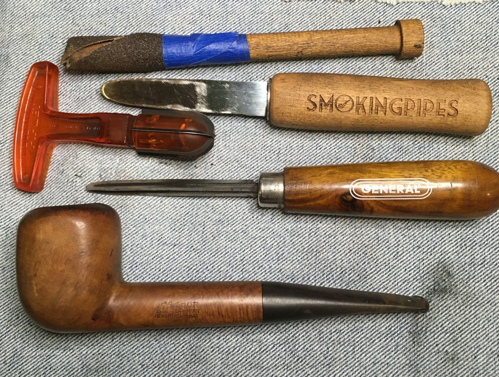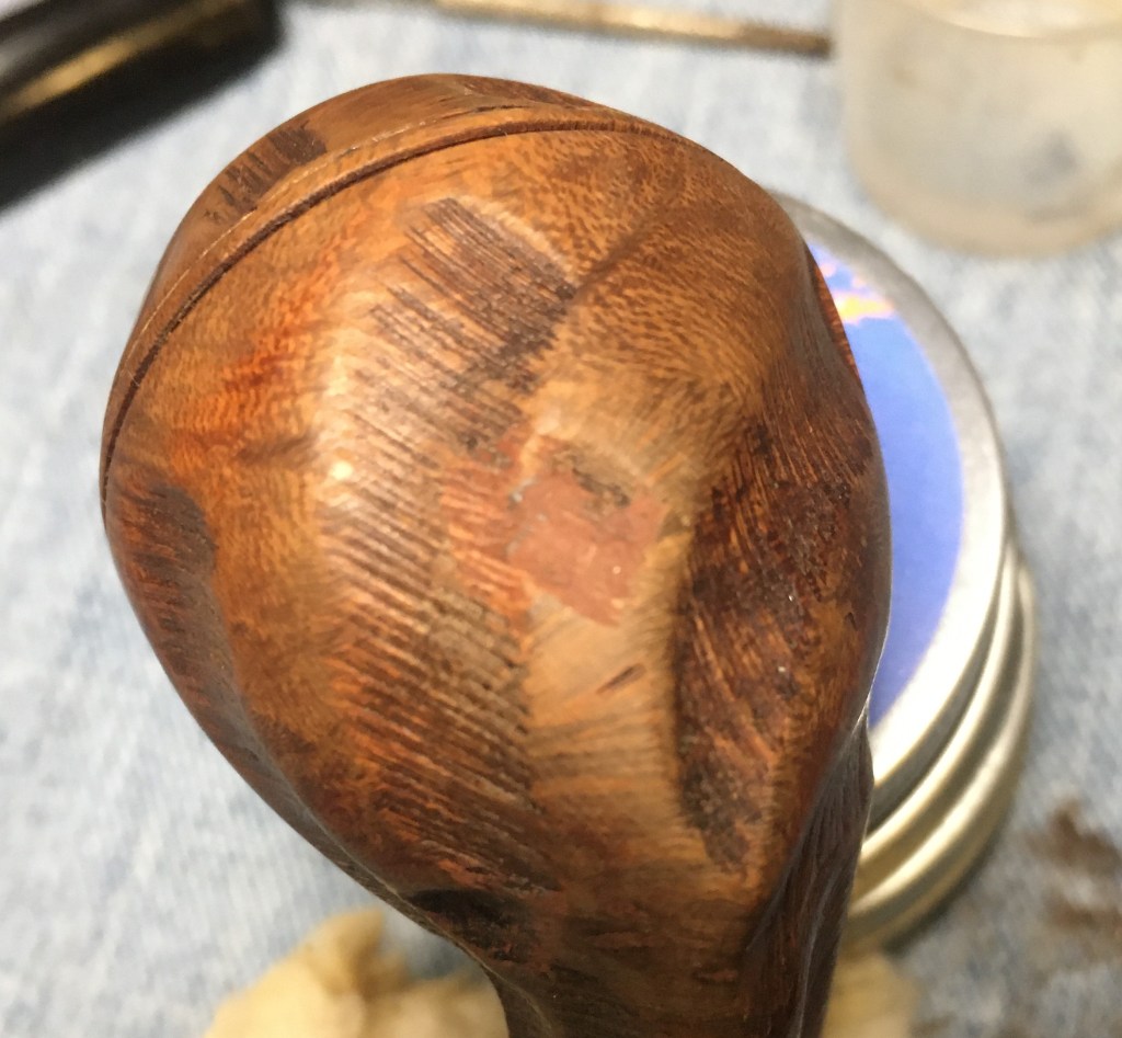 The first step was to ream the tobacco chamber. I used the PiNet reaming toot with the #2 blade, the Smokingpipes Low Country knife and the General triangular scraper for the brunt of the work. THe chamber was then sanded with 220 sandpaper wrapped around a wood dowel and 320 sandpaper wrapped around a Sharpie marker.