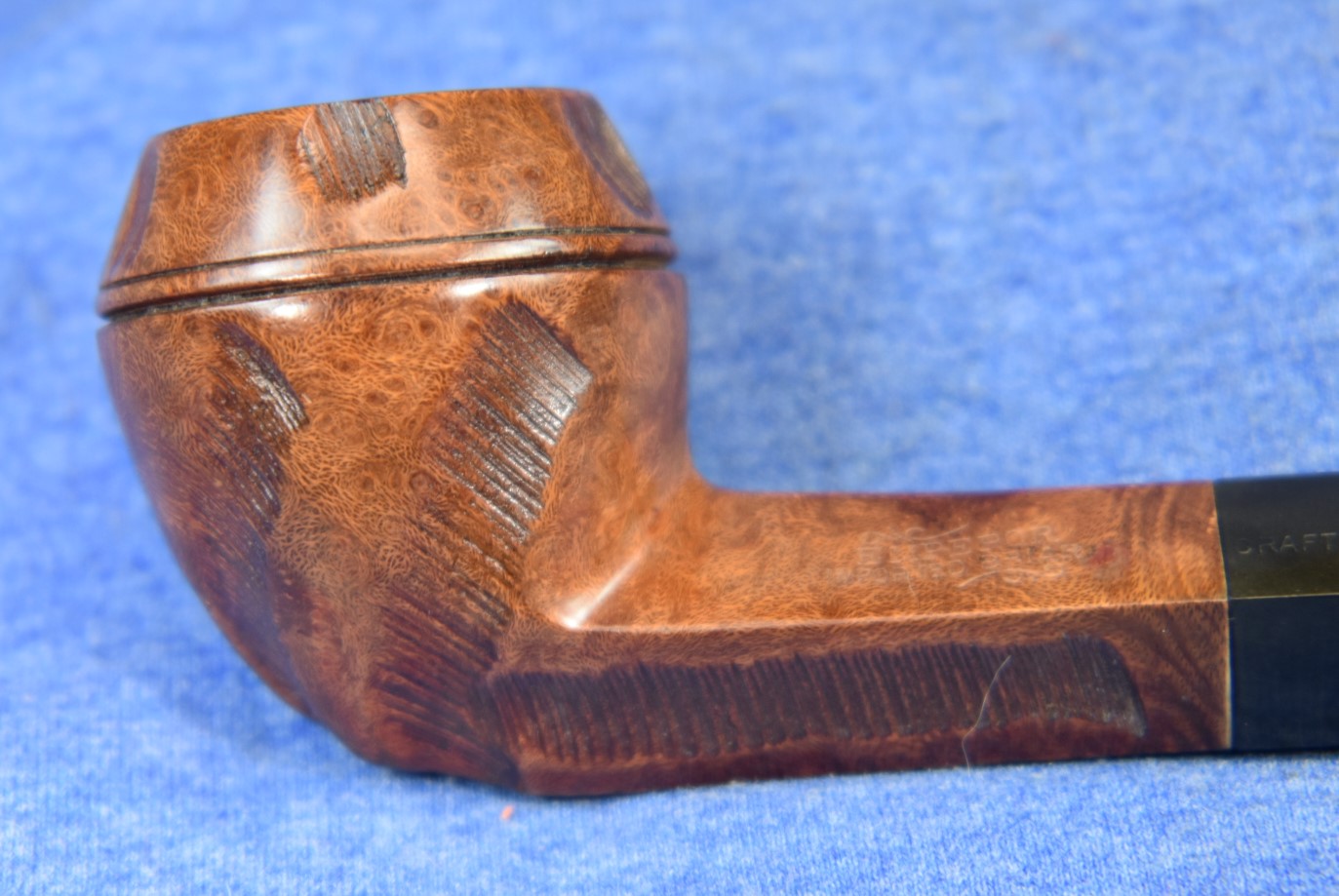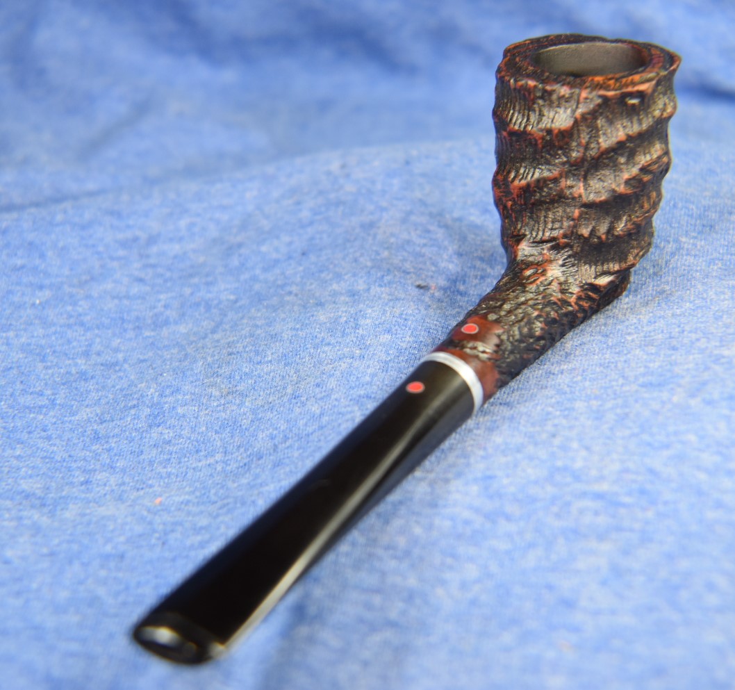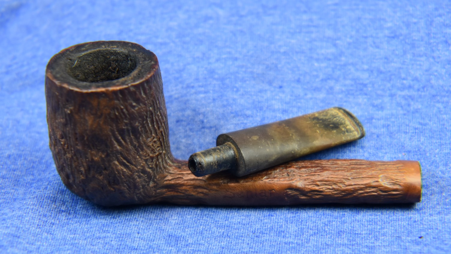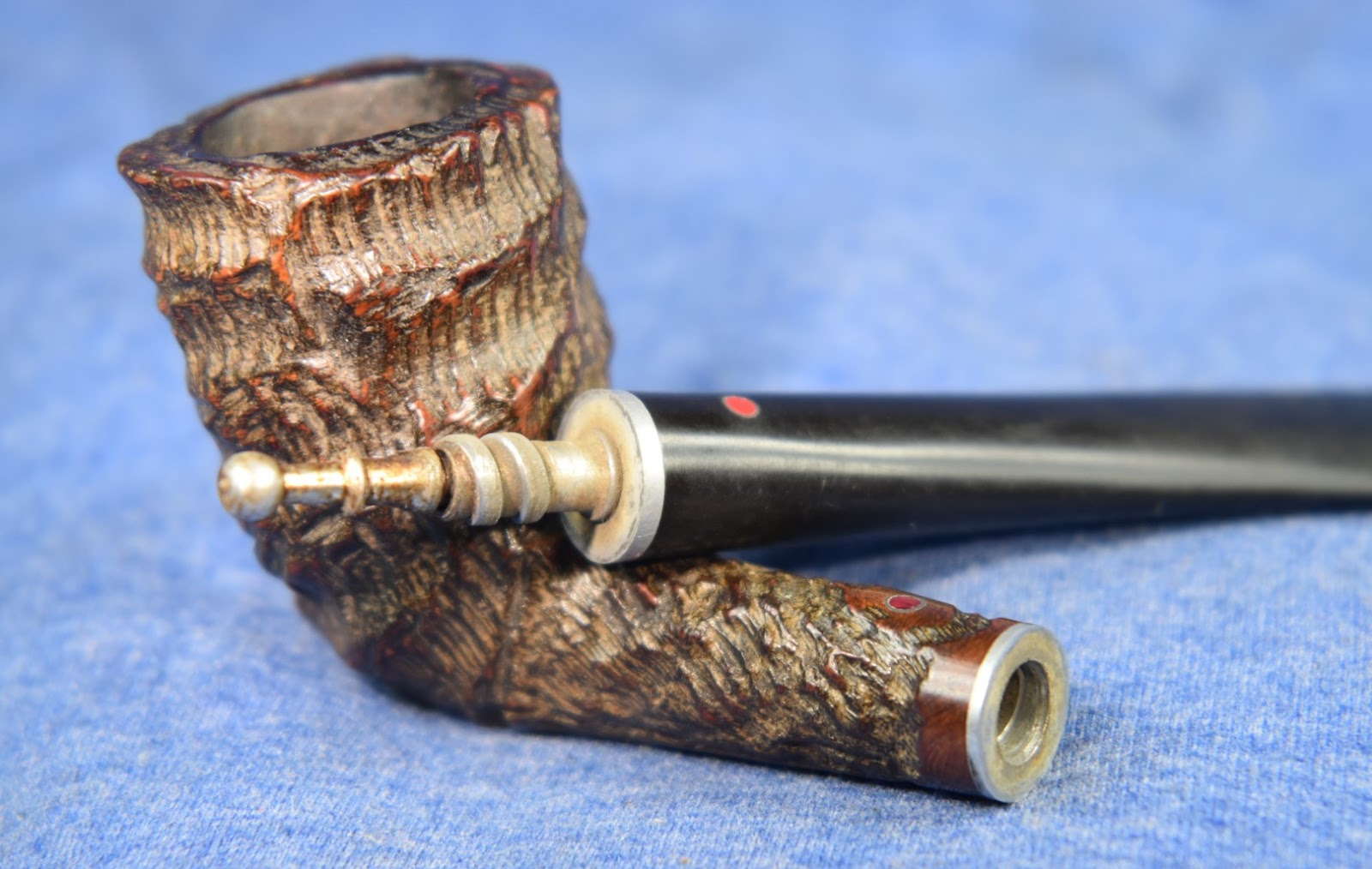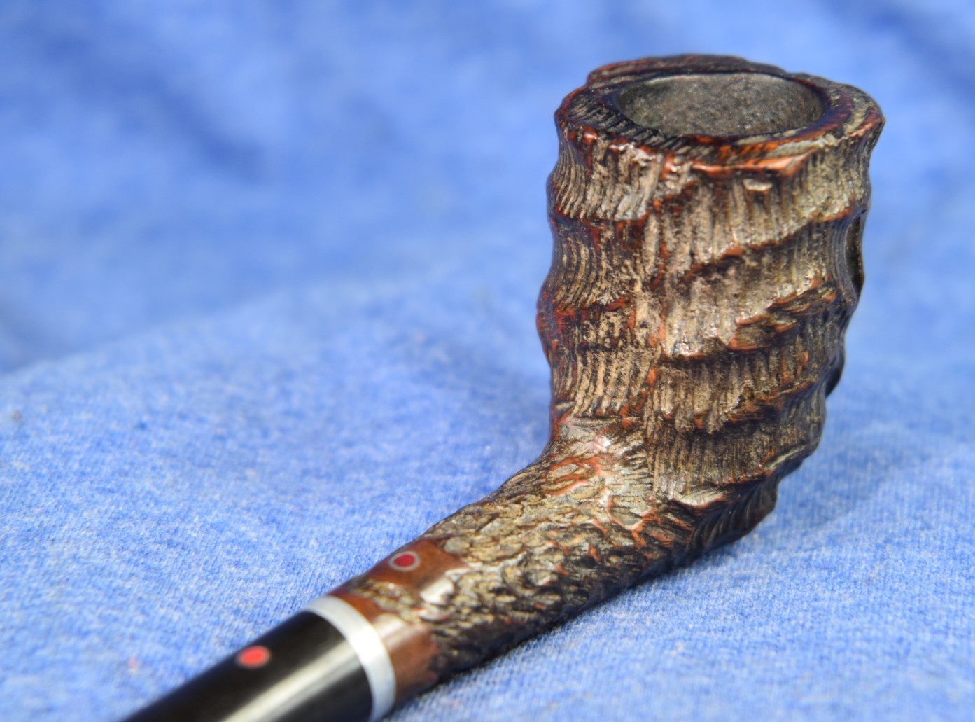 Larsen sought to make Senlar pipes “Look like a tree.” Which he accomplished by using a whirling drill to carve a distinctive bark like finish on the pipe. It is a finish seen on most Senlars and Larsen regarded it as a sort of trademark.