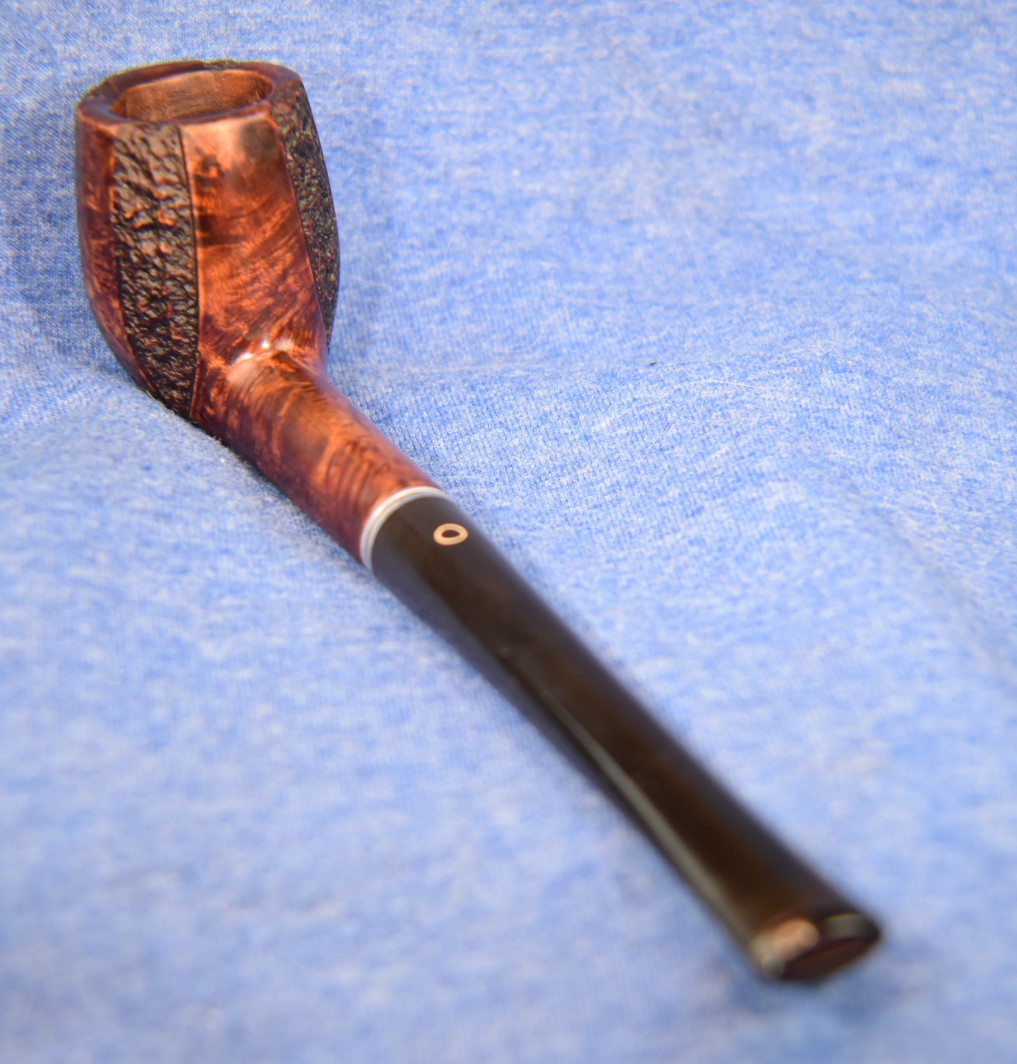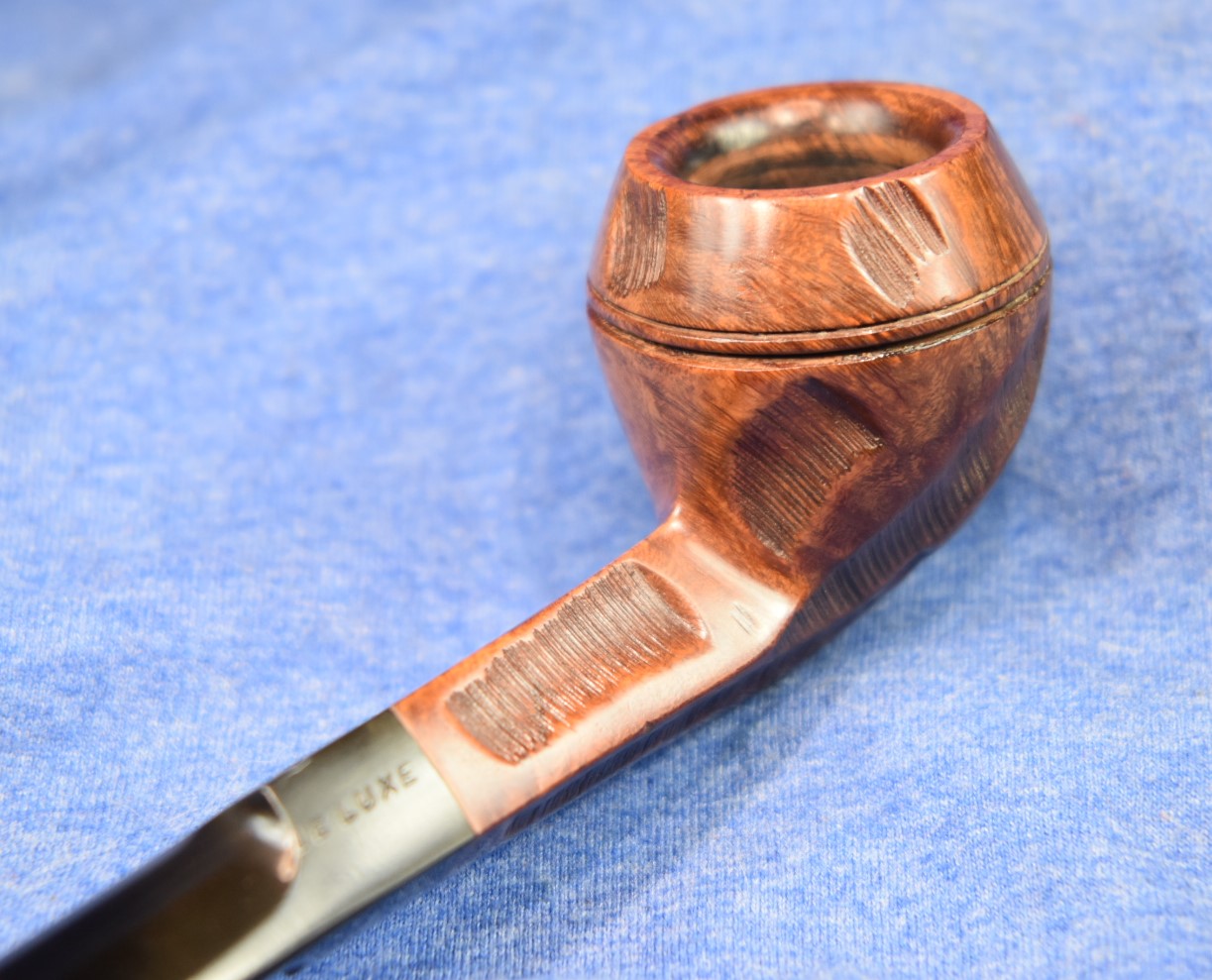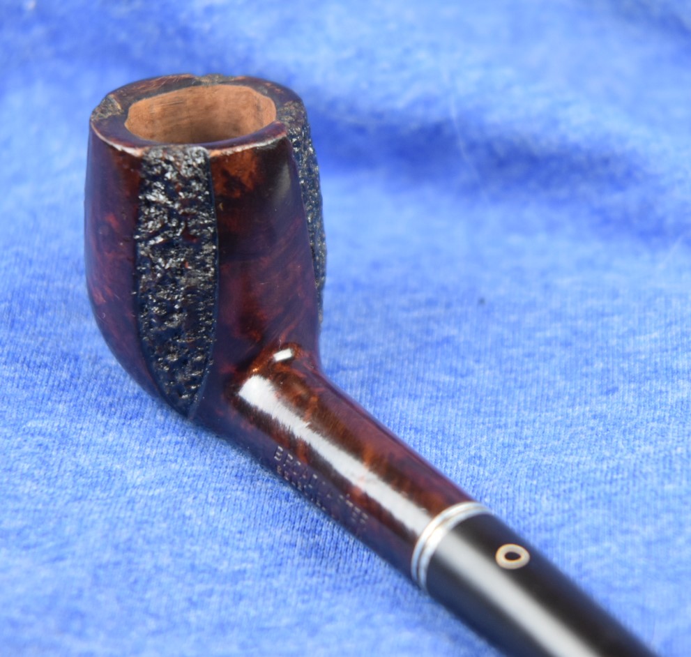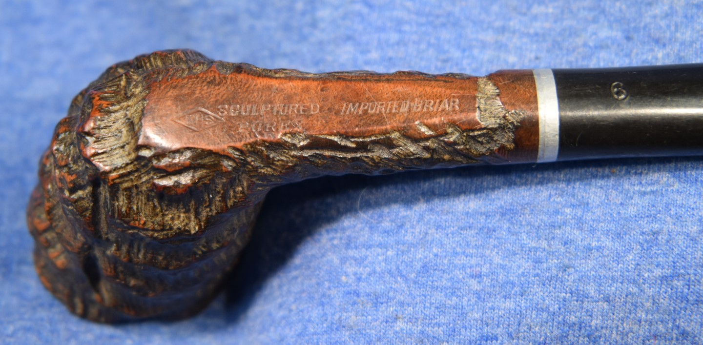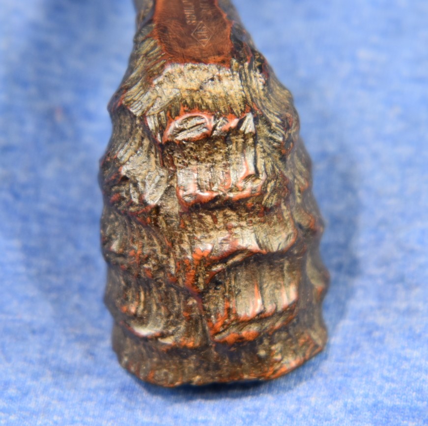 Larsen sought to make Senlar pipes “Look like a tree.” Which he accomplished by using a whirling drill to carve a distinctive bark like finish on the pipe. It is a finish seen on most Senlars and Larsen regarded it as a sort of trademark.