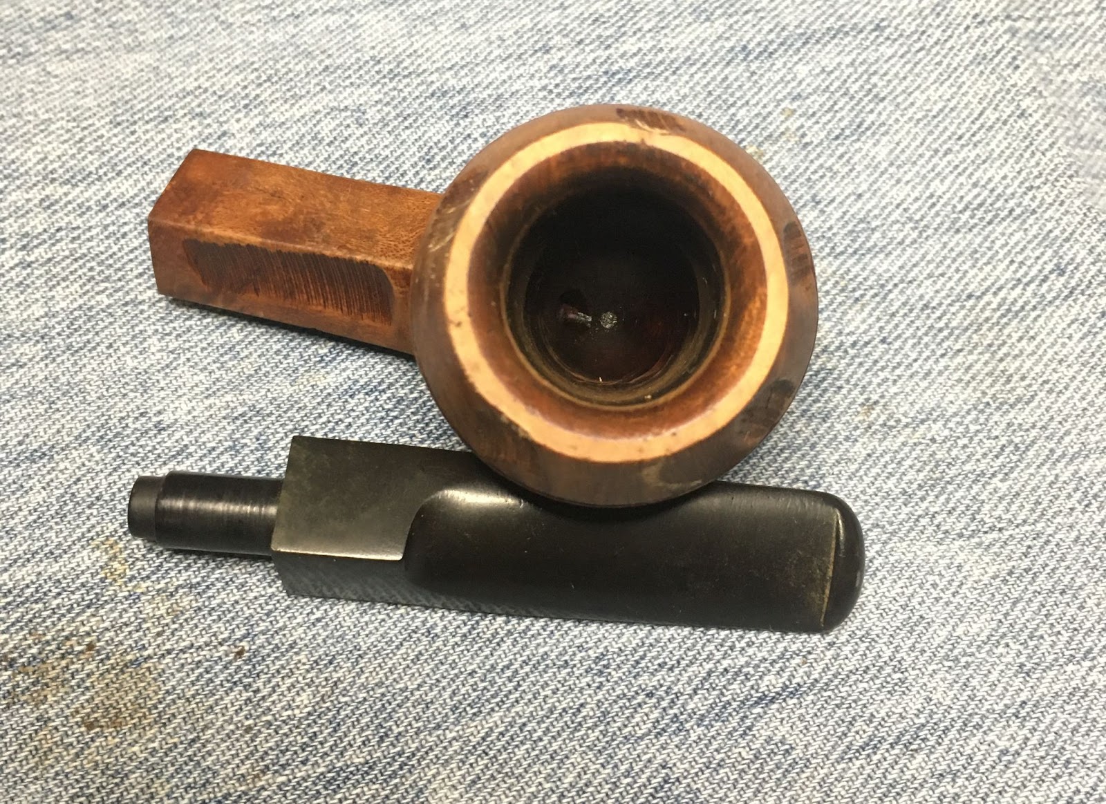 The first Senlar that Idecided to restore was the uppermost pipe in the photo above. As I saved the photos from the restoration they were all called “Senlar Canadian 1 …”. For this blog I’ll just be calling it the Senlar Canadian or the Canadian. Here is our subject by itself before any work has been done.