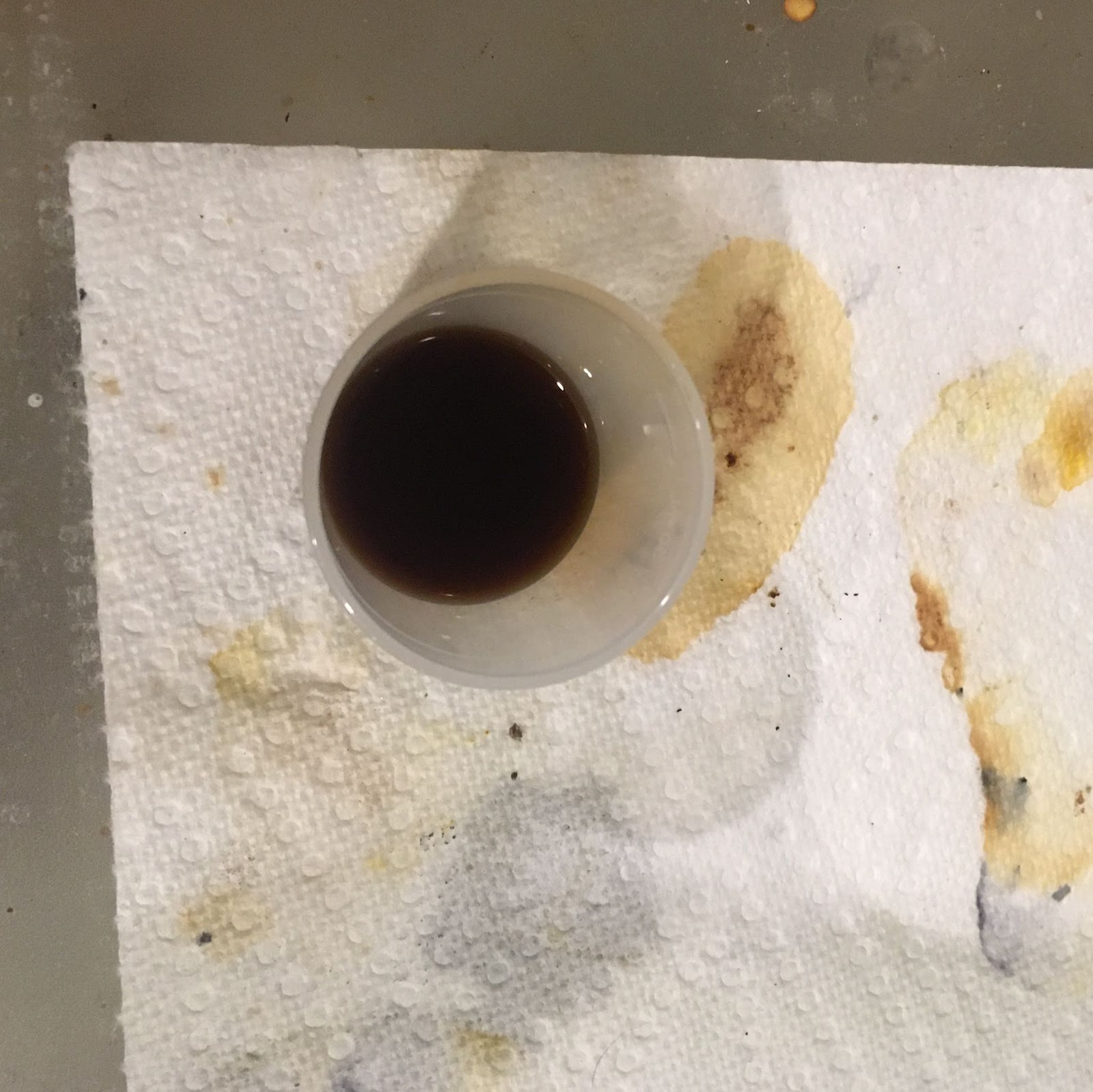 This process of scrubbing with alcohol followed by soap was repeated numerous times. I lost track of the number. After replacing the alcohol more than 3 times I returned to the workbench and tried the cotton swabs again. Better but still very dark. My hands were tiring/cramping from the same repetitive motions so I took a break.