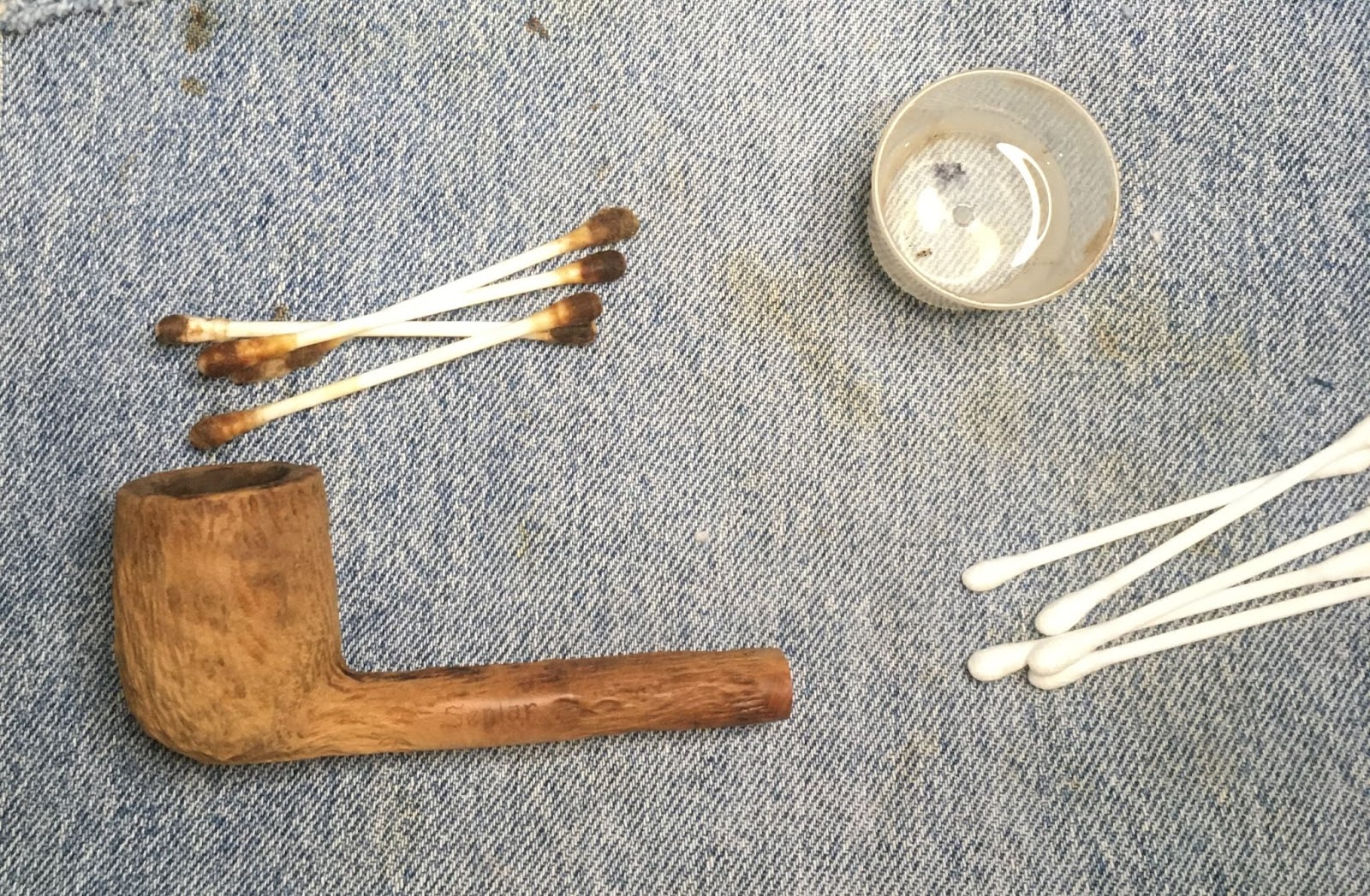 Returning to the stummel, I went back to the alternating alcohol then Castile soap scrubbing. A few more changes of alcohol and a return to the workbench and cotton swabs finally showed a much lightened color to the cotton swabs. Eventually the airway was cleaned.