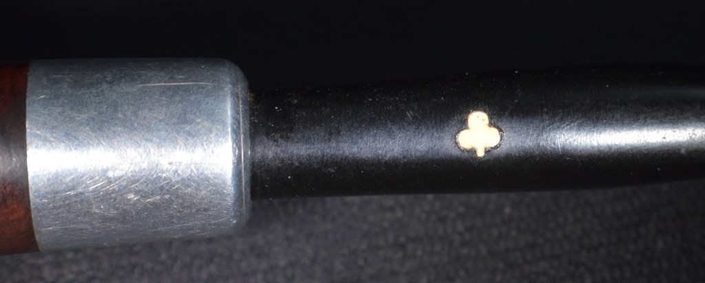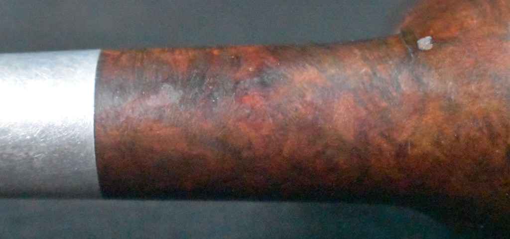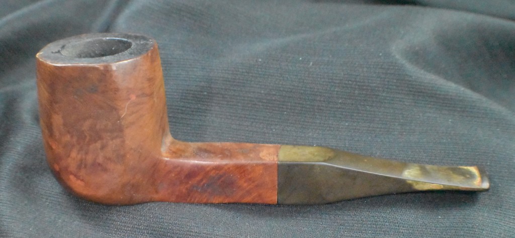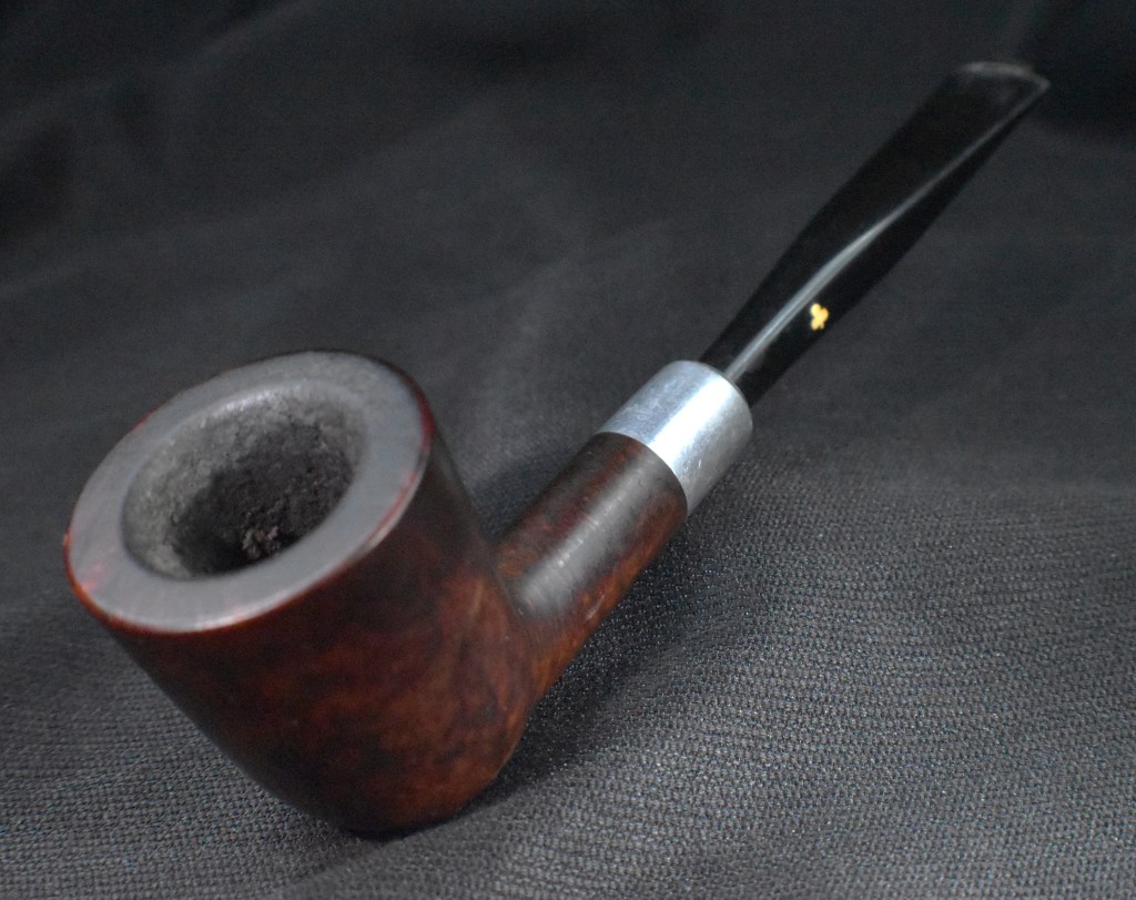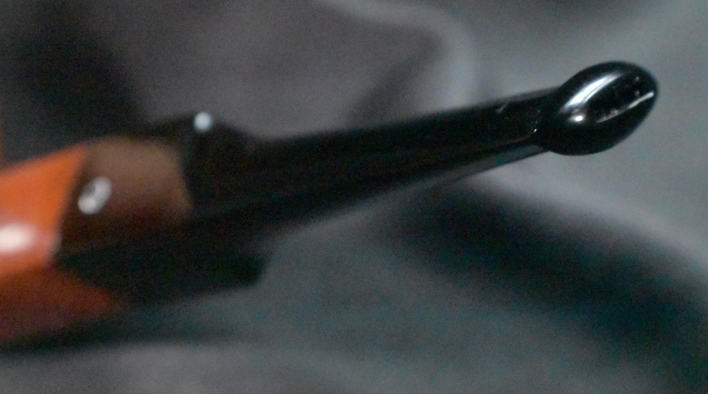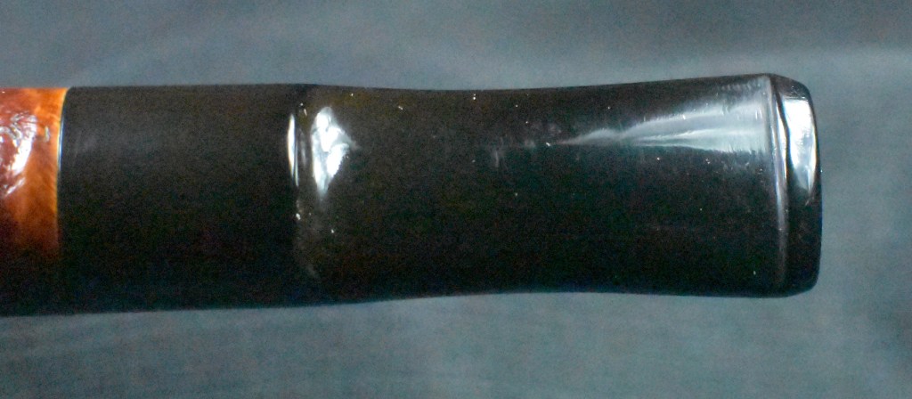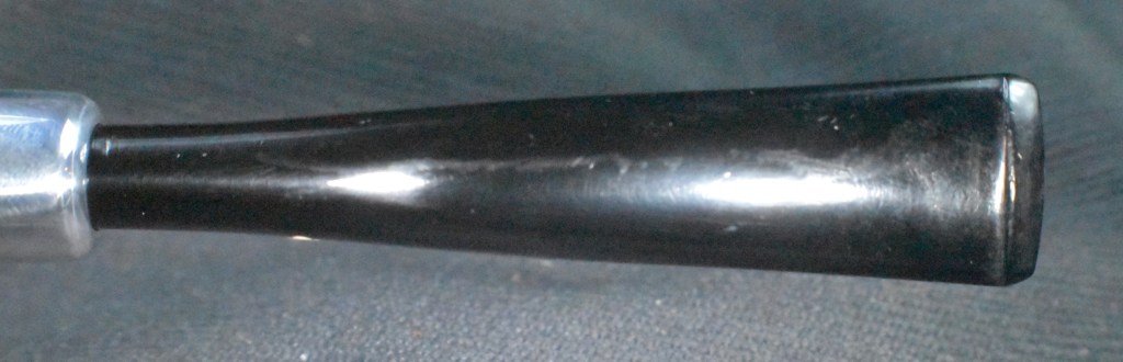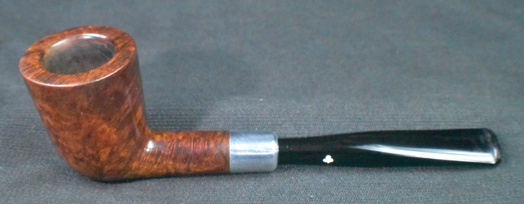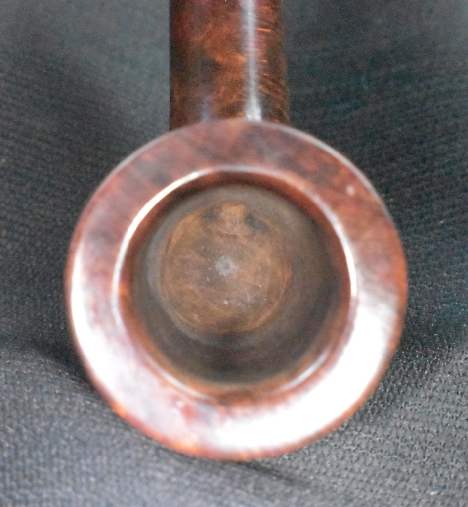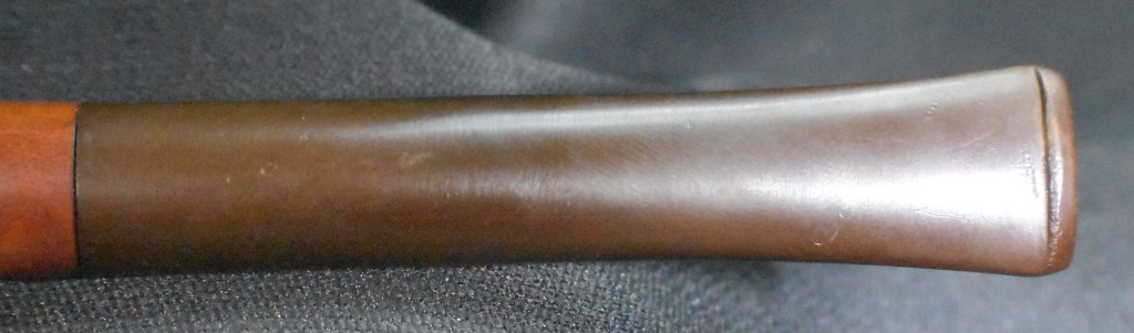 Another clue to the date of this Kaywoodie can be found with the stem logo. According to the Kaywoodie Collector’s Guide from the pipedia.org site, “Early (pre-1936) Kaywoodies had an “elongated” white cloverleaf on the bit, a large fitment, and four-digit shape numbers. The 1936 catalog shows a larger, “fuller” leaf, but lists two-digit shape numbers. Sometime between 1936 and 1947, the better pipes were marked on the bits with a black cloverleaf in a white circle. The white cloverleaf continued on the lesser pipes. However, this was not a consistent convention, as pipes of the same grade could have either type of leaf.” (Collector’s Guide to Kaywoodie Pipes – Pipedia). Again the dates here intricate the 1936-1947 period but show no definitive years.